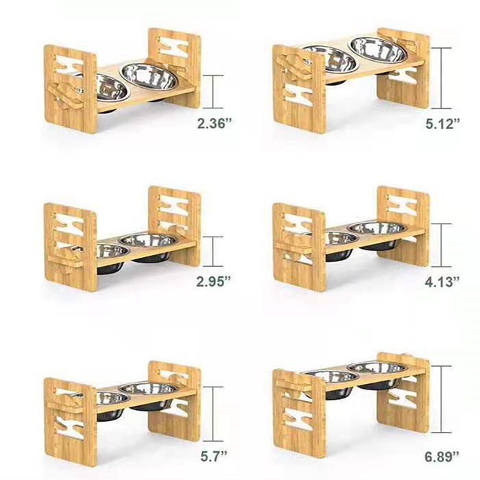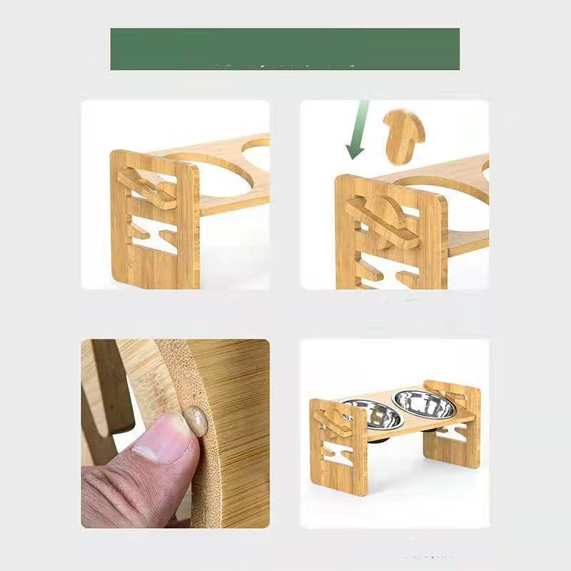 Bamboo and wood cat and dog bowl rack*1