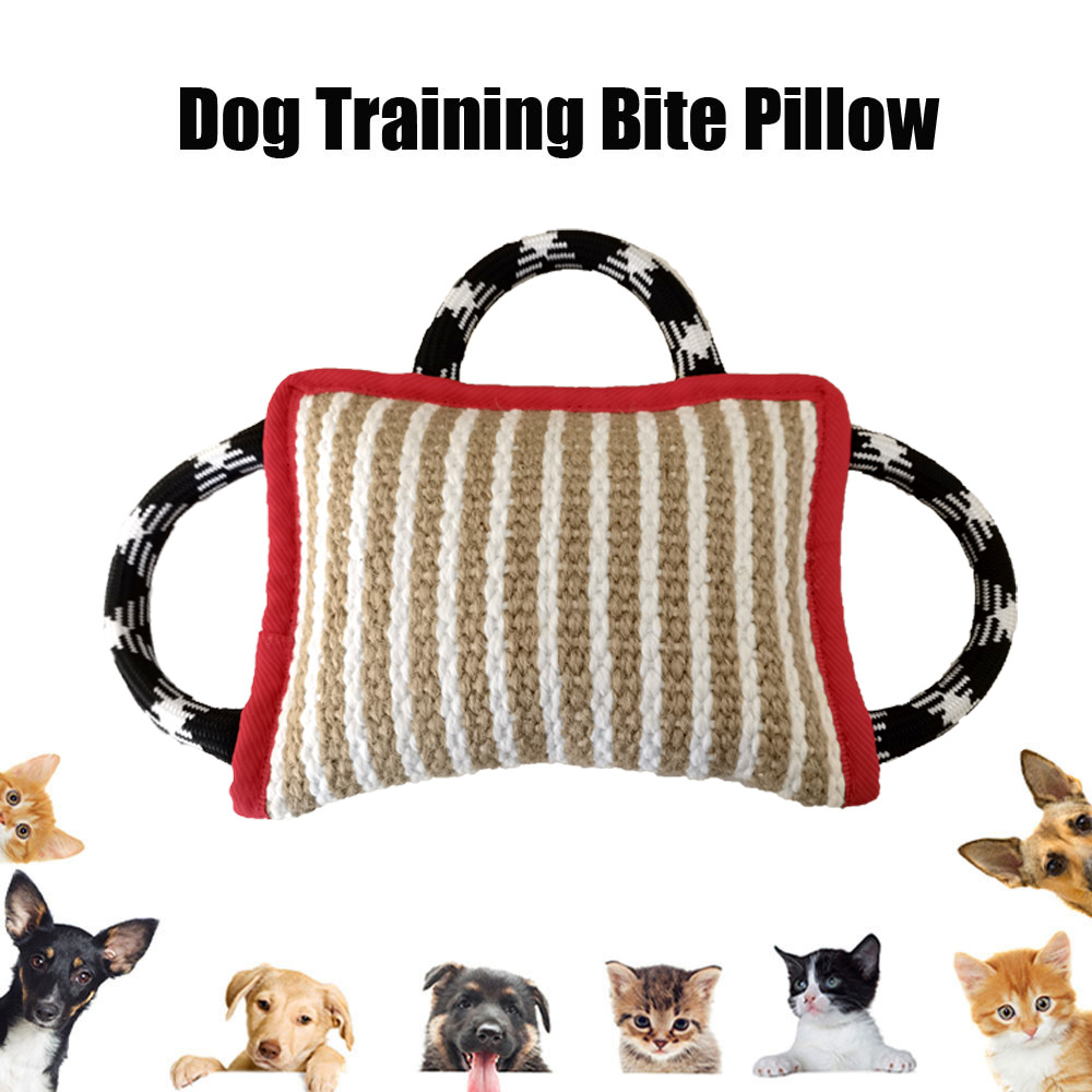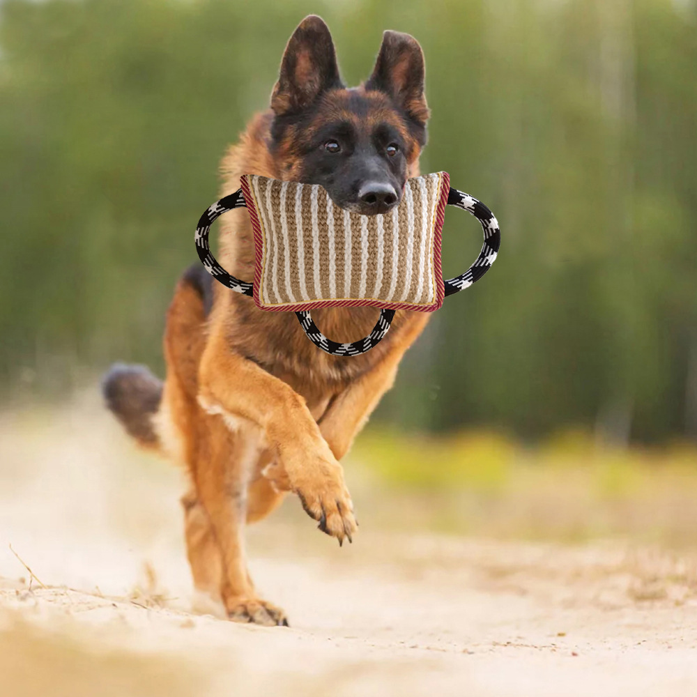 【Dog Jute Bite Pillow】This dog jute bite pillow has a tough biting sleeve surface made of high quality jute, which is strong and durable, can withstand daily tugging. The edges are tightly stitched, bite-resistant and not easy to loose for long time use.