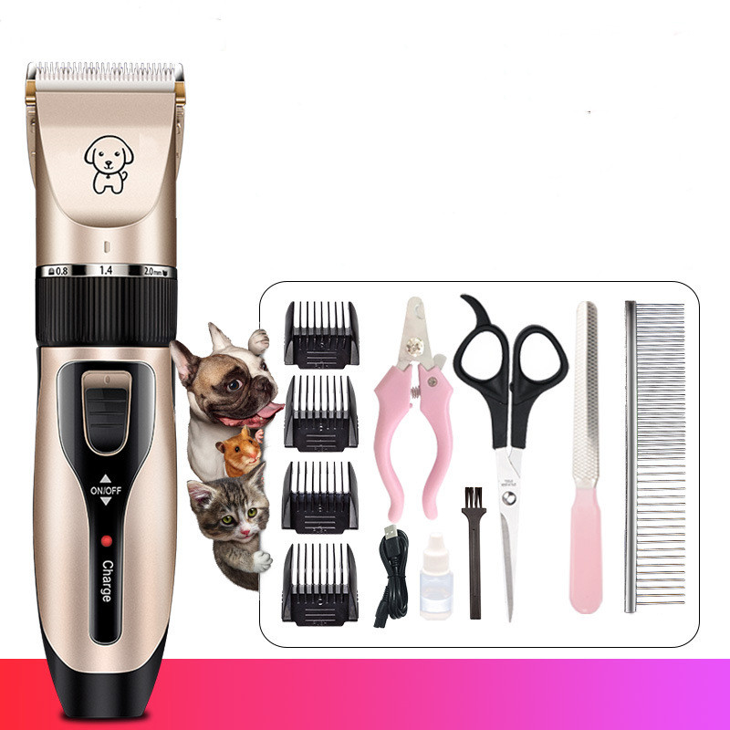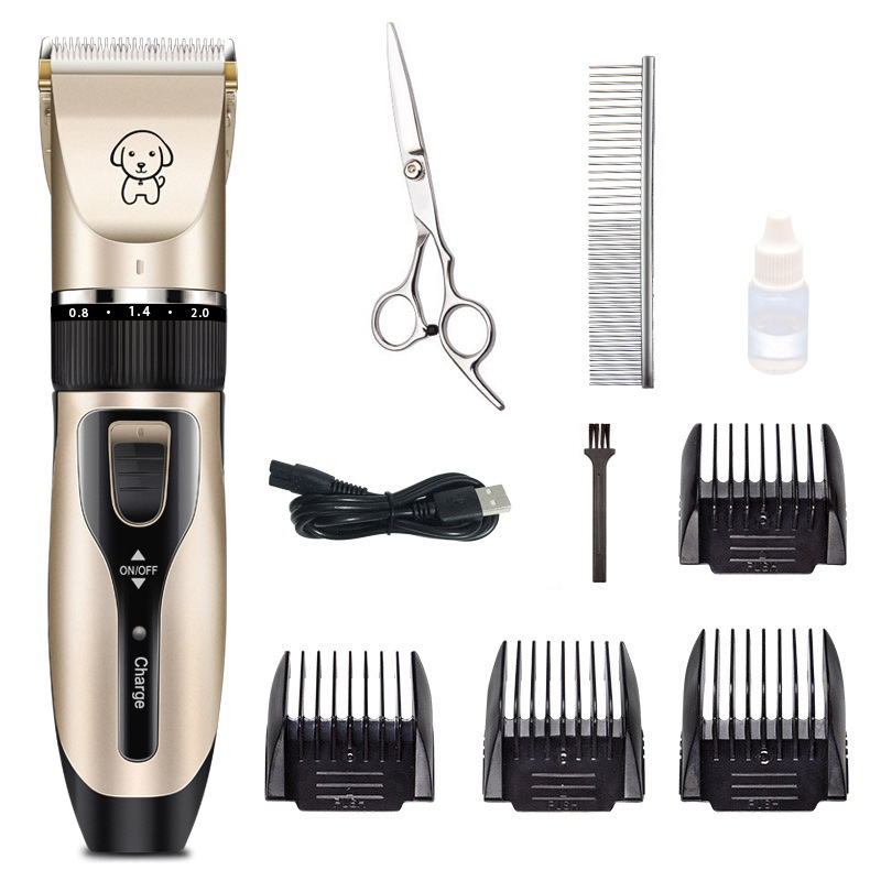 PackageF: host, charging cable, positioning comb (4 pieces), small brush, manual, stainless steel flat scissors, nail file, nail clippers, row comb