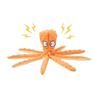 Octopus Dog Toys: This Octopus plush dog toy with bright color is an adorable character that will attract your dog’s interest and keep them entertained. Your dog will have hours of fun with these cute dog toys. perfect for puppies, small, medium and large dogs.