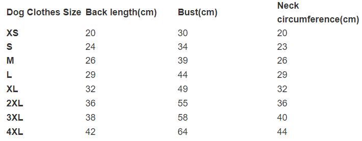Size: XS, S, M, L, XL, 2XL, 3XL, 4XL