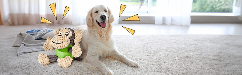 Cute Shape with Soft Material-Special design with cartoon shape of monkey and ultra soft fabric with 4 legs and 2 ears,your dogs will be interested in our plush toys.
