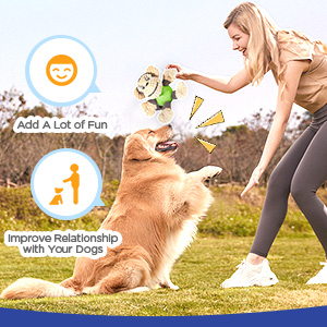 More Fun Dog Toys-Built-in squeakers in body and mouth which can draw their attention and keep your breeds excited and busy for hours,and avoid destructive chewing and barking.