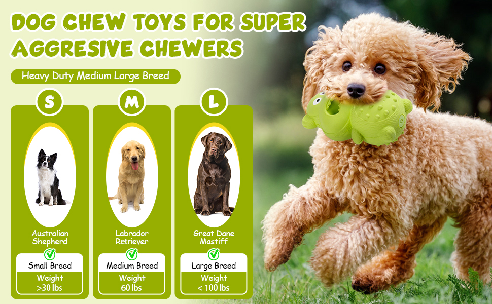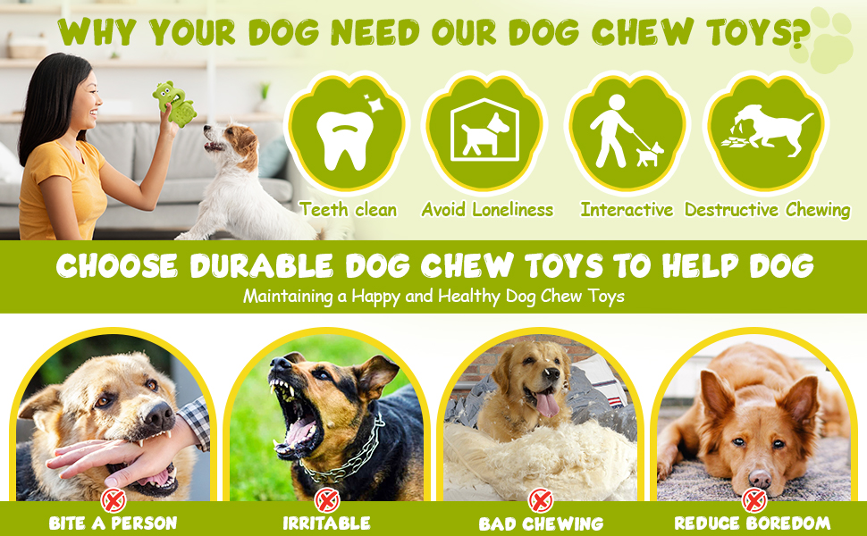 DURABLE DOG TOYS FOR AGGRESSIVE CHEWERS: Interactive dog chew toys for aggressive chewers are tougher than other toys to satisfy dogs' urge to chew and gnaw. Dog toys for large dogs are tough dog toys and last for weeks. Dog chew toys are almost indestructible dog toys for aggressive chewers and can withstand more vigorous chewing. This long-lasting dog chew toy is the best gift for 20-80 lbs dogs.
