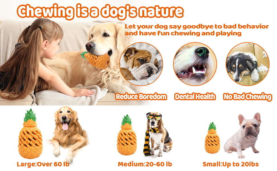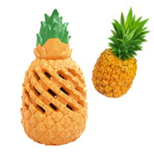 Great For Stuffing:classic pineapple rubber toy offers hours of entertainment and could be coated with different flavored sauces. It can attract dogs once it’s stuffed with snacks, peanut butter, or kibble.