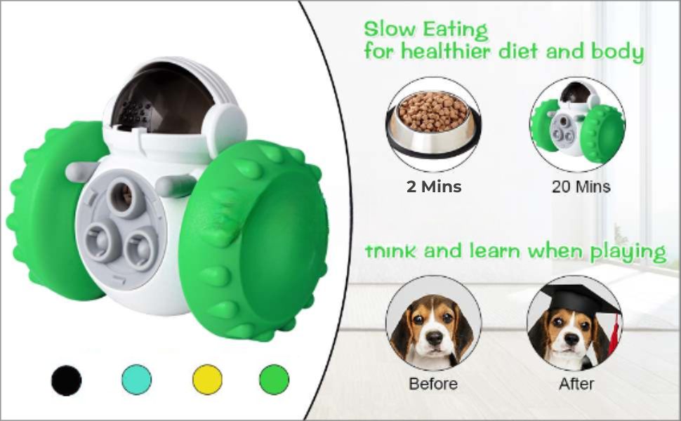 Design Pet Dog tumbler puzzle toy is perfect for dog training, dog enrichment toy adopts self-balancing system. With the fun roller design and robot appearance which can catch pets attention and reduce anxiety when they stay at home alone.