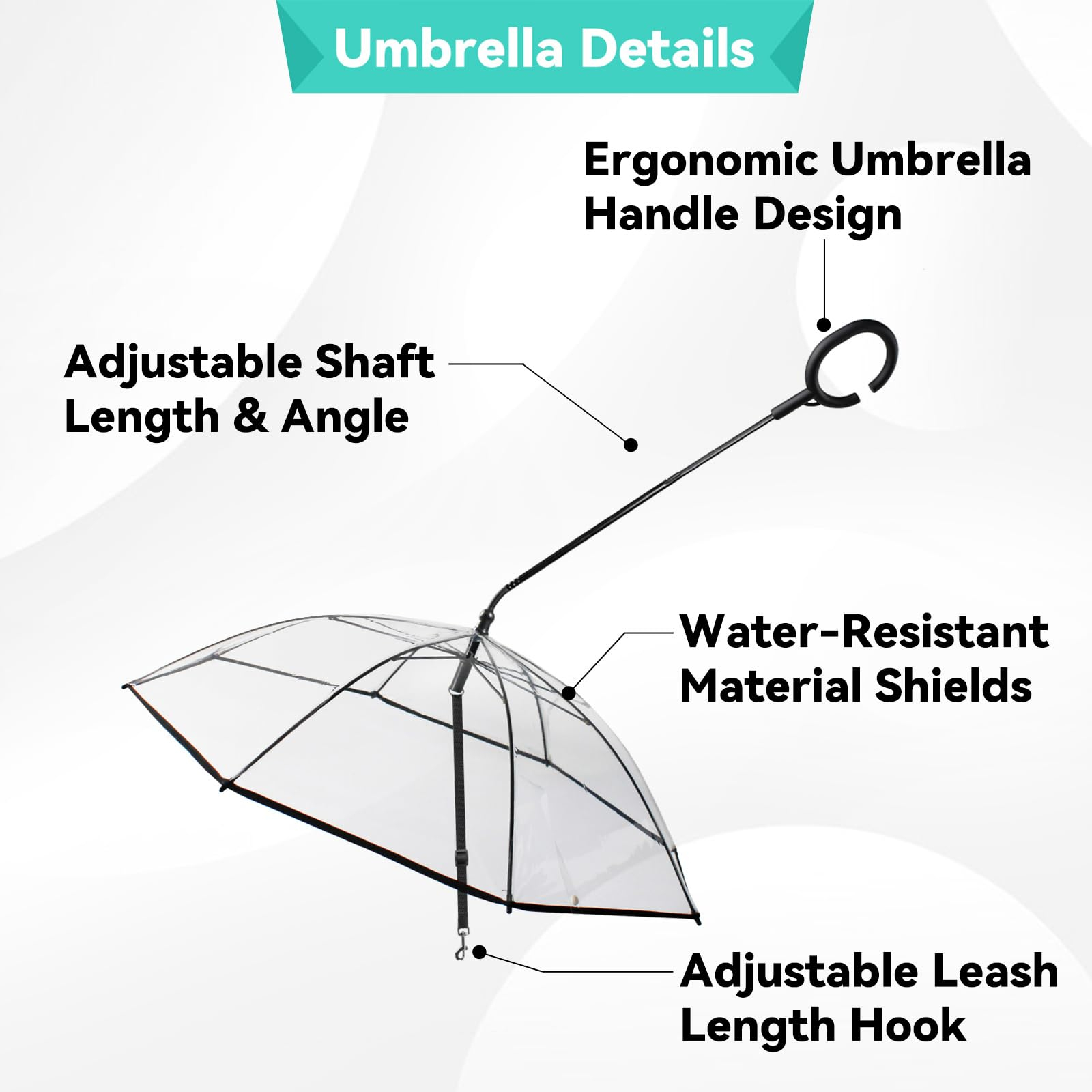 Clear & Waterproof Material: Transparent water-resistant umbrella allows dog to see surroundings and walk with ease, owners also easily see the dog's range of activities.