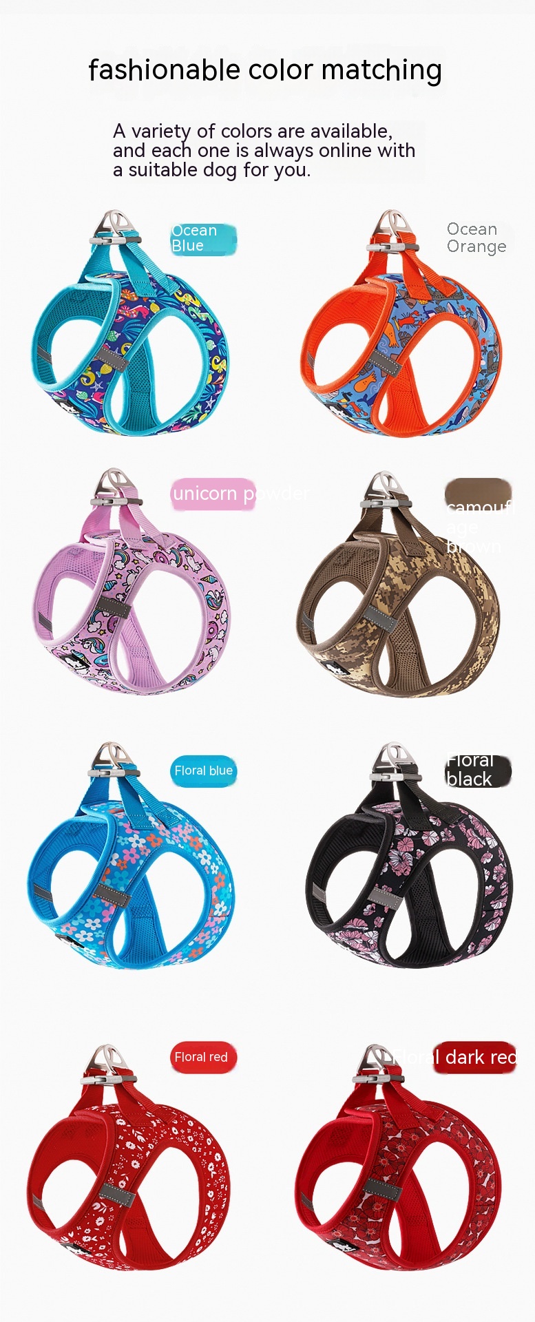 Color: Ocean Blue, Ocean orange, camouflage Brown, floral dark red, floral black, floral red, floral blue, pink