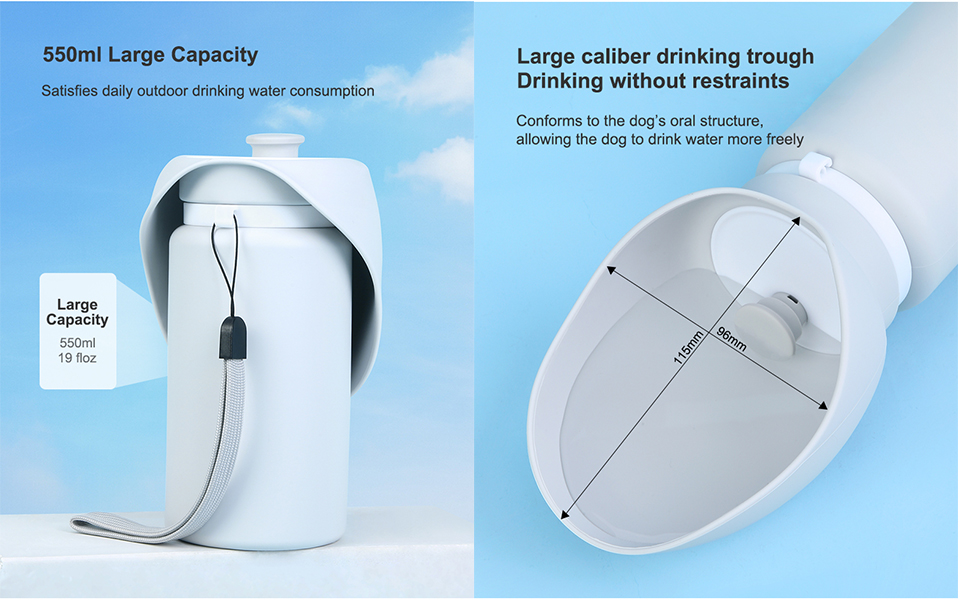 DURABLE: This dog portable water bottle is a sustainable choice for pet owners. Its durable design ensures it can withstand the rigors of travel and frequent use.