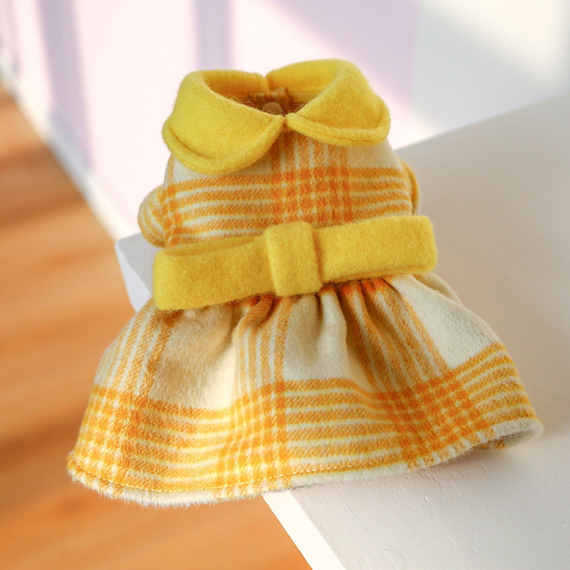 Color: Yellow Checked Doll Collar Woolen Dress