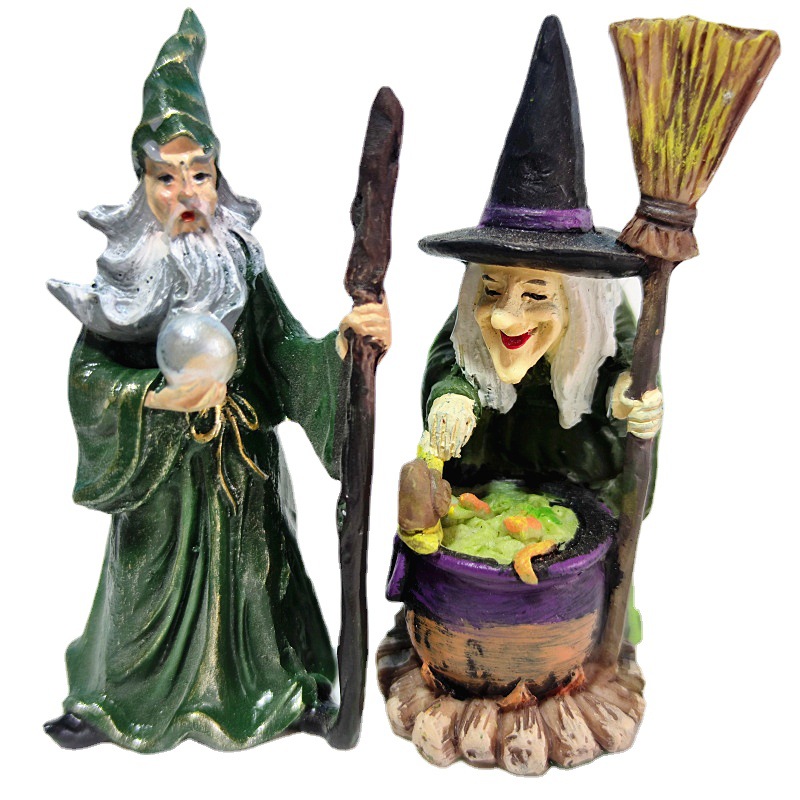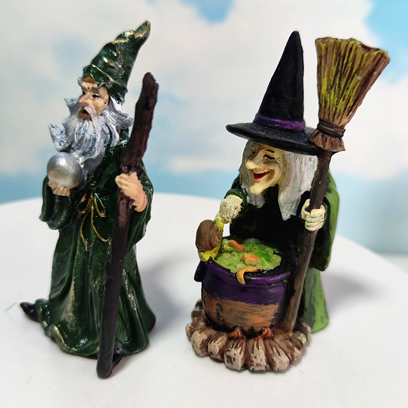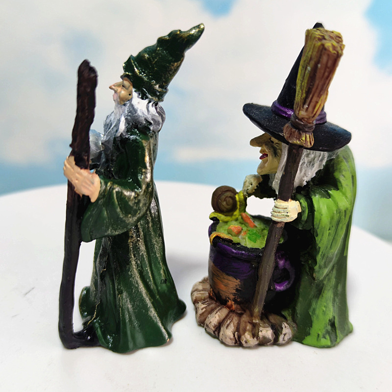 Size: Wizard length 3.8cm × width 2.8cm × height 8.4cm, witch length 3.5cm × width 4.5cm × height 9.0cm