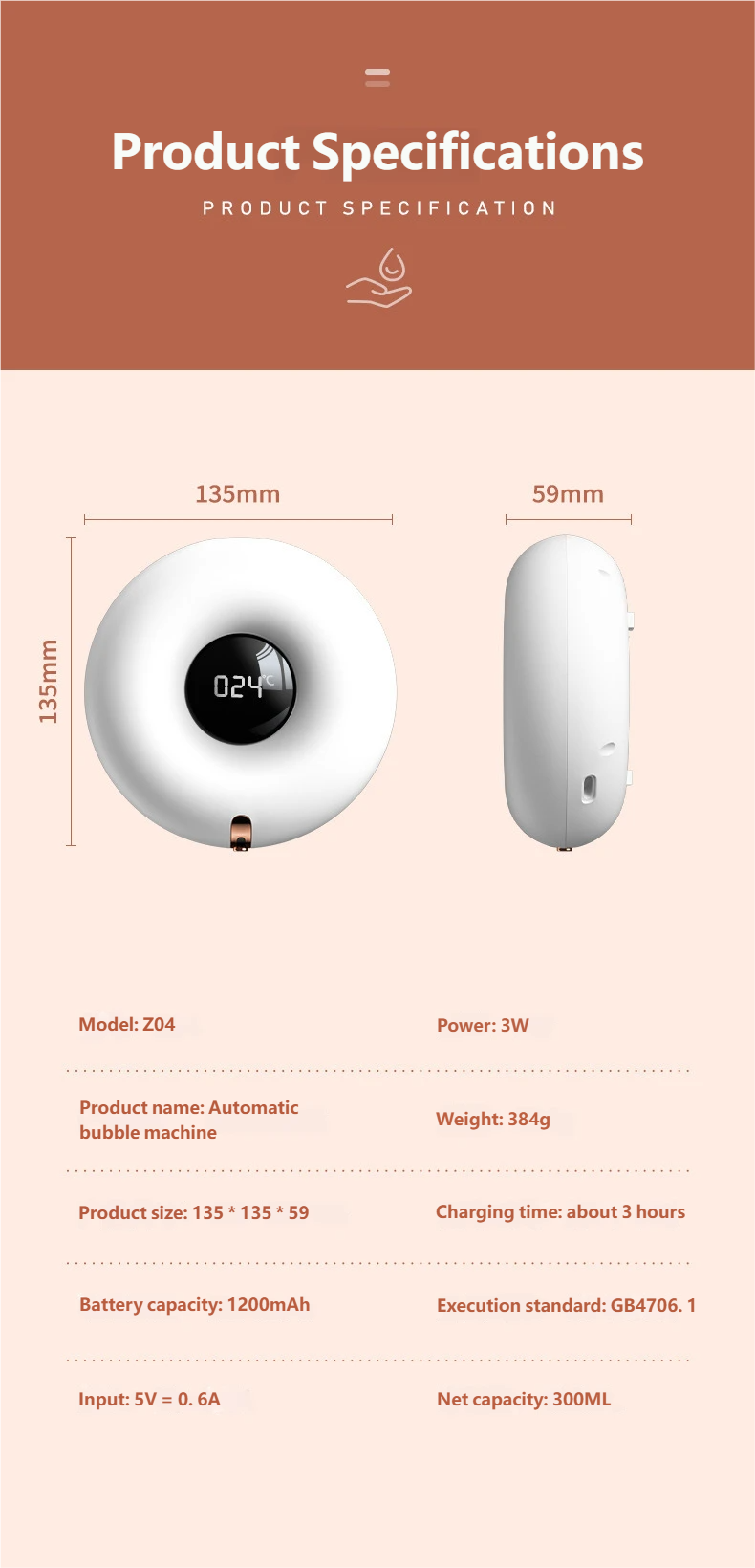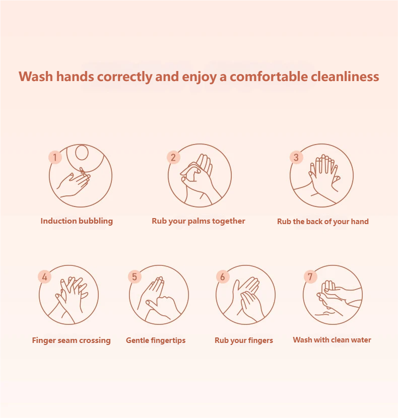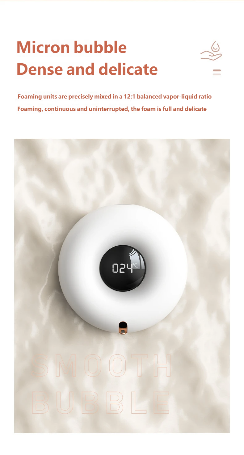 Micron-level Dense Foam, Thorough Cleaning: Built-in high-efficiency foaming system that precisely mixes soap and air at a ratio of 12:1 to generate cloud-like, dense, and delicate foam. Compared to traditional liquid soap, the foam covers a larger area and can reach deep into finger crevices for a thorough clean.