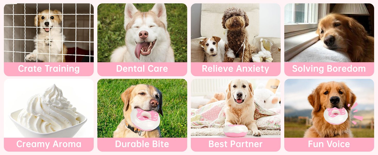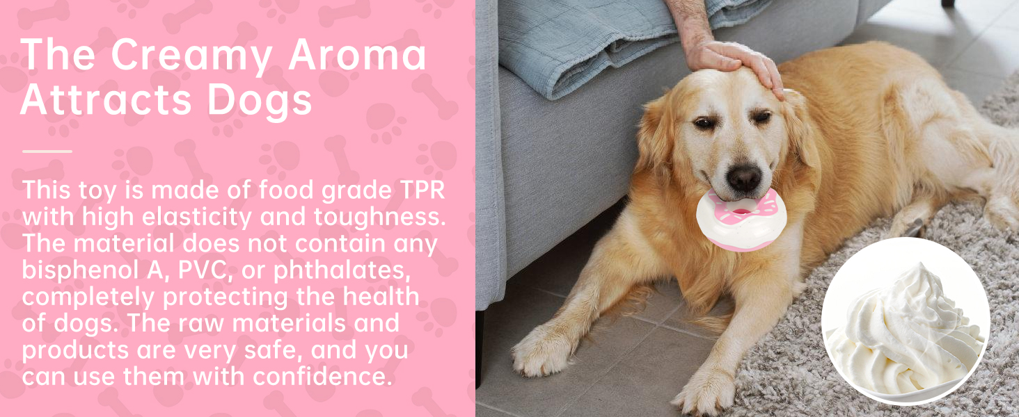 [Easy to use] This donut toy is very simple to use. it not only brings joy to your dog whenthey are bored or without company, reducing anxiety due to loneliness, but it alsoprevents your dog from damaging household items such as furniture and clothes.providing your dog with a happy and enjoyable experience.