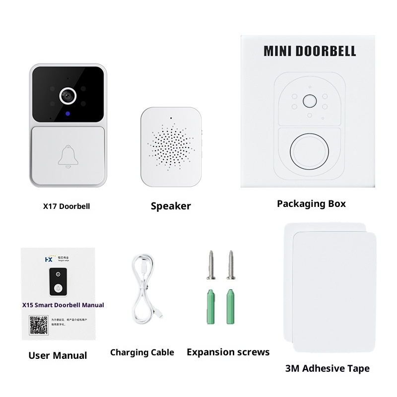 X13 doorbell + speaker + packaging box + charging cable + expansion screws + 3M fixing glue + instructions