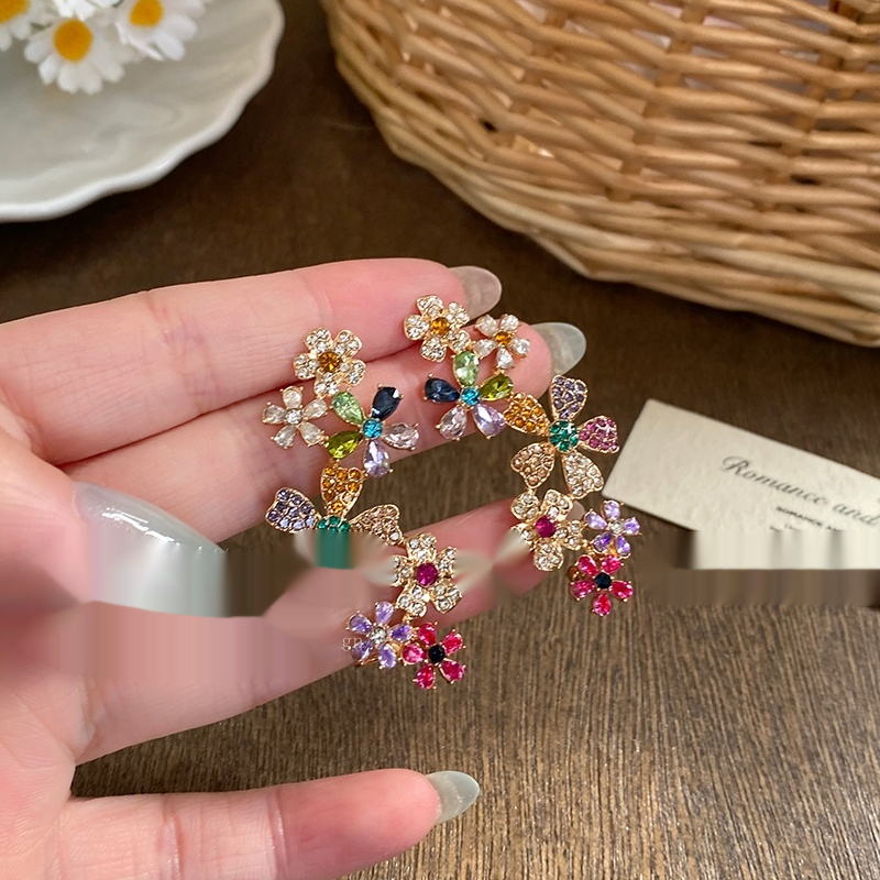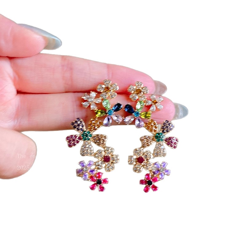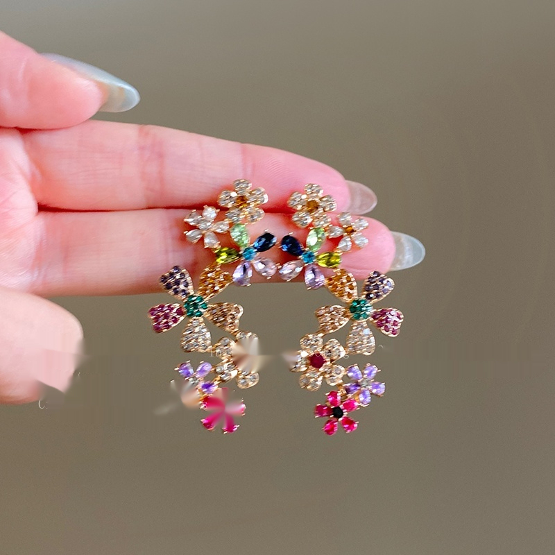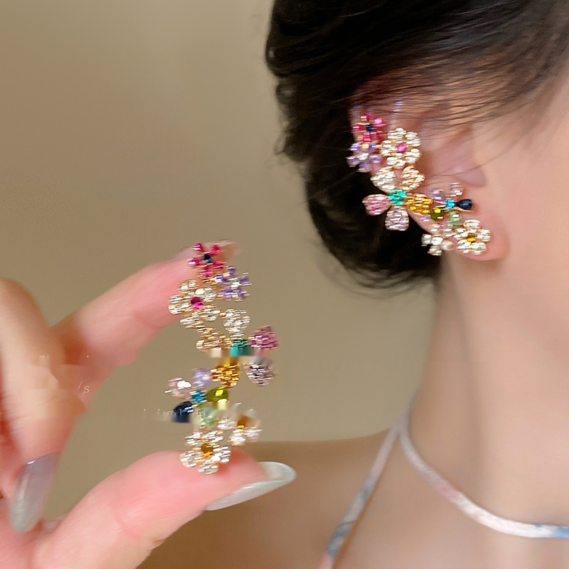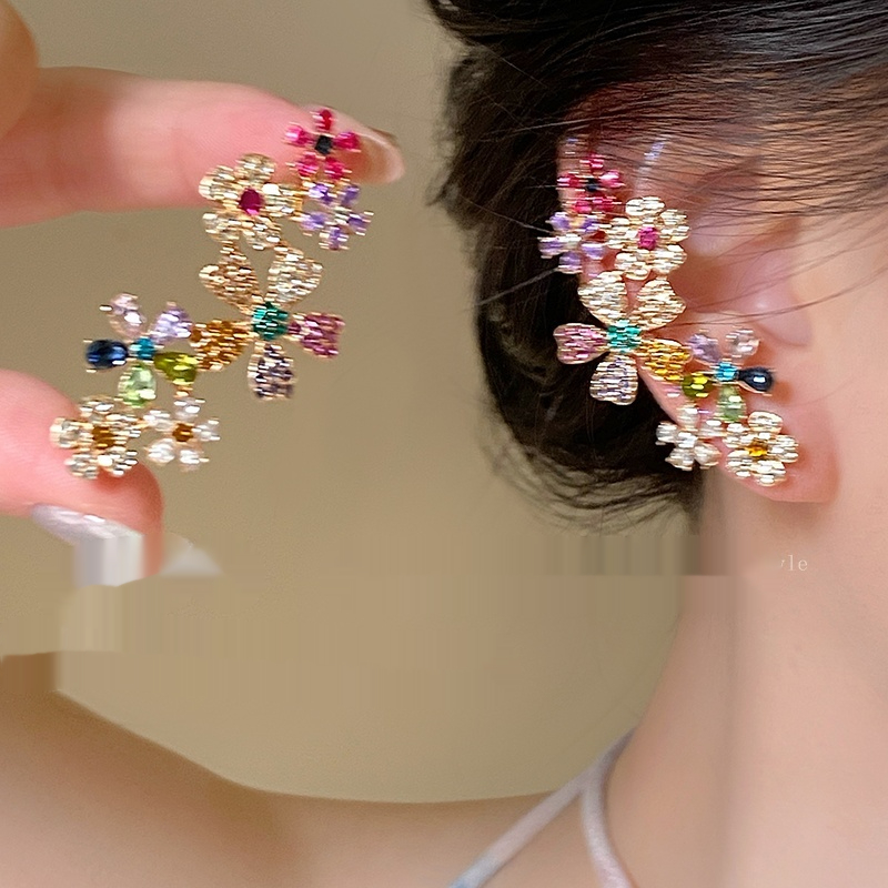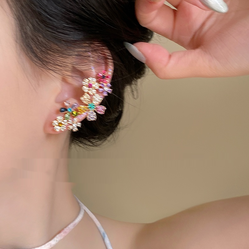 Color: Flower contrast color zircon ear studs ear clip integrated, non-perforated ear clip ear clip pair