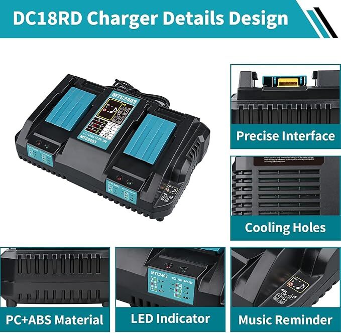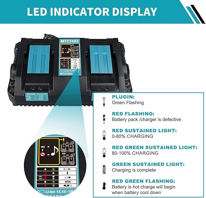 Doppel-Schnellladegerät für Makita 18V Li-Ion-Akkus BL1860, BL1830, BL1850, BL1840 (DE)