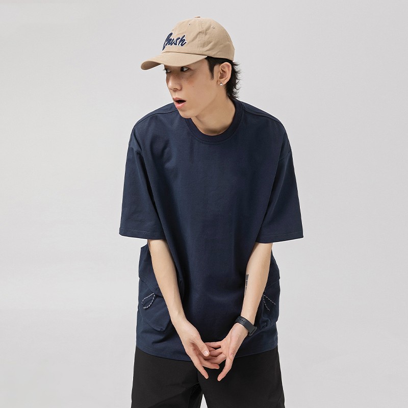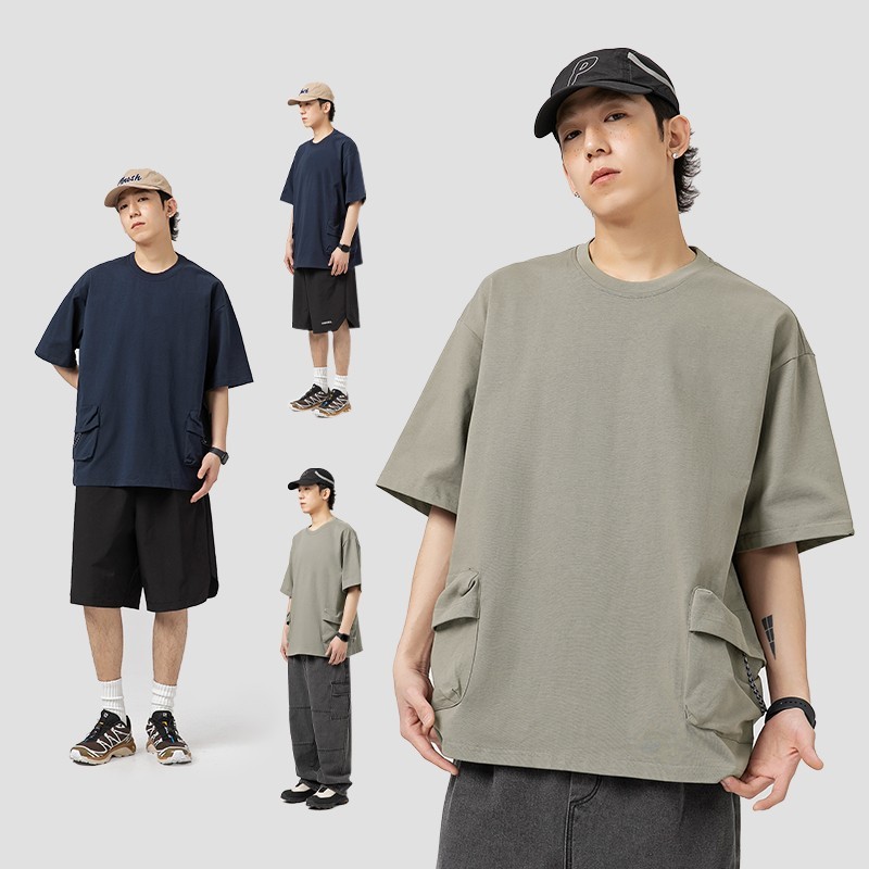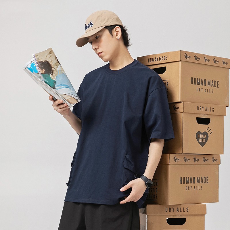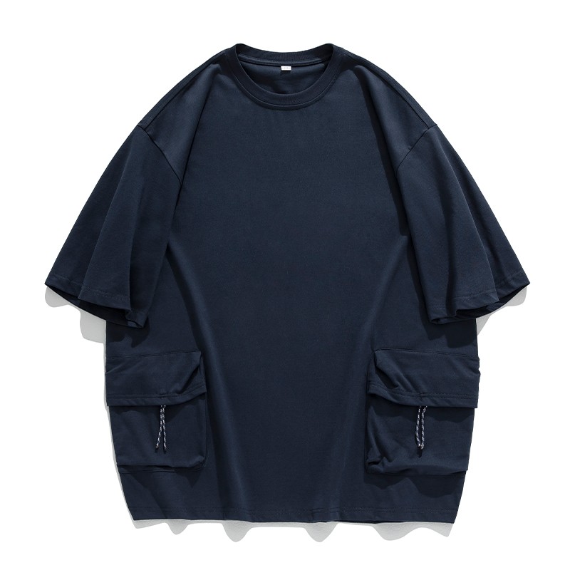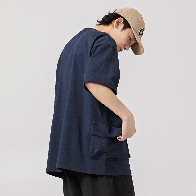 Double 3D Pocket Workwear Short Sleeve Men's Vintage Pure Cotton T-shirt