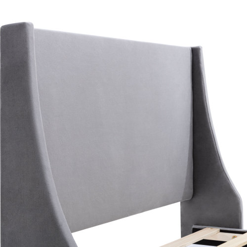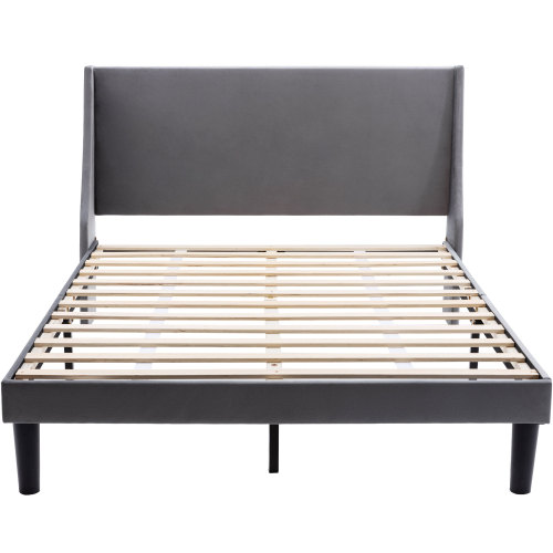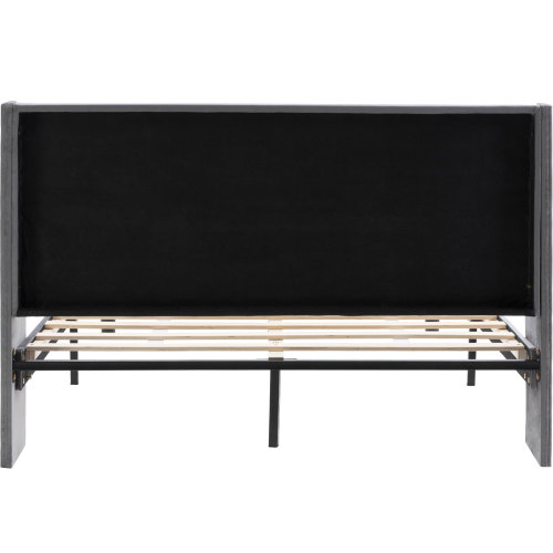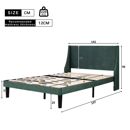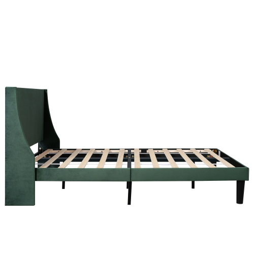 Product Name:Double Bed Velvet Dark Green 4FT6 Upholstered Bed with Winged Headboard, Wood Slat Support