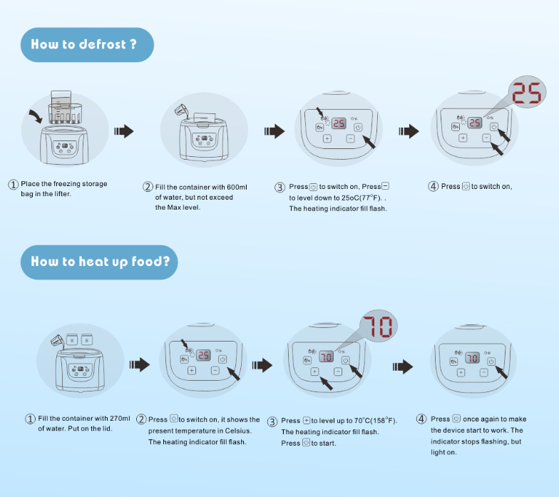 Nian designed this double bottle milk warmer, which can warm 2 bottles of milk and complementary food at the same time, with a higher lid
