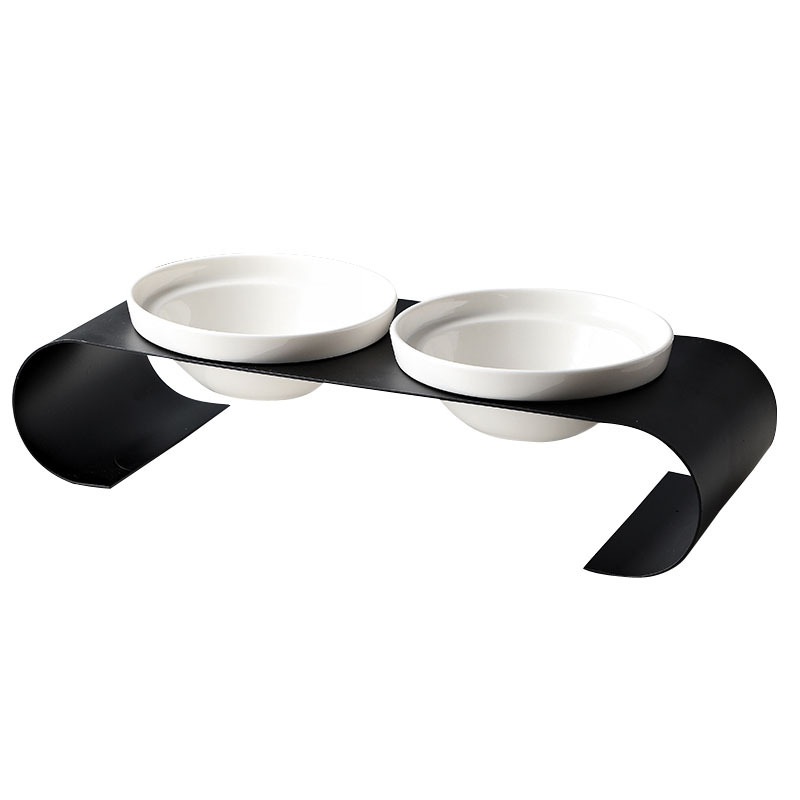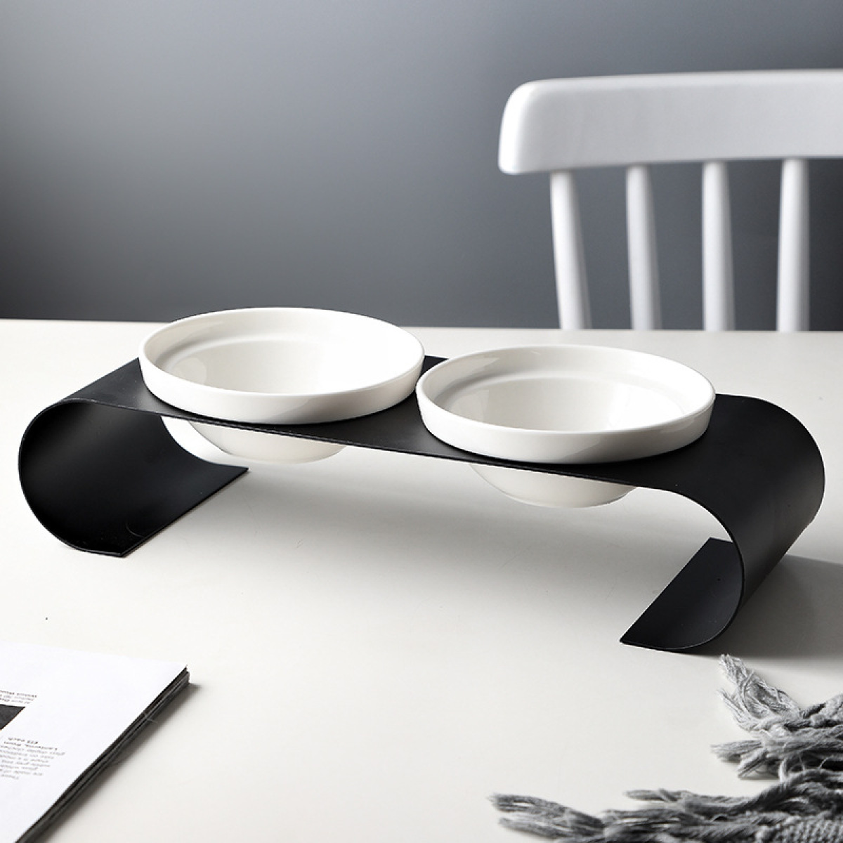 Double Bowl Dog Bowl Iron Frame Protect Spine Ceramic Bowl Set