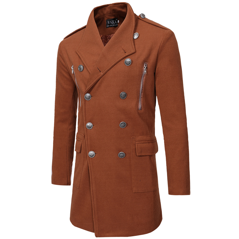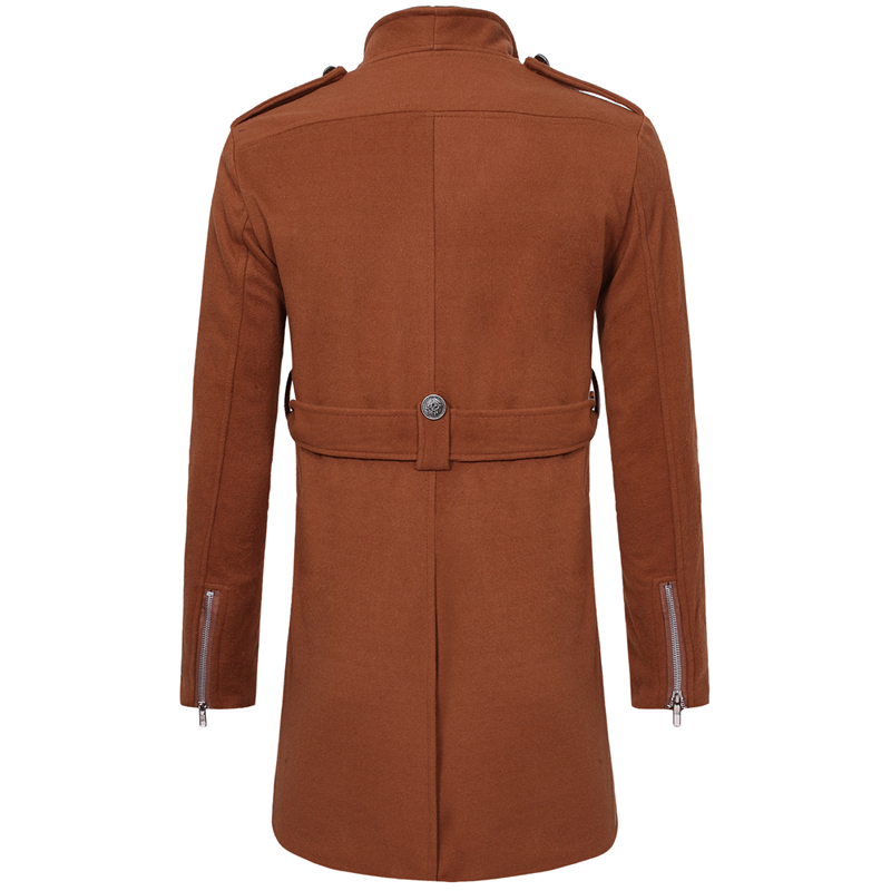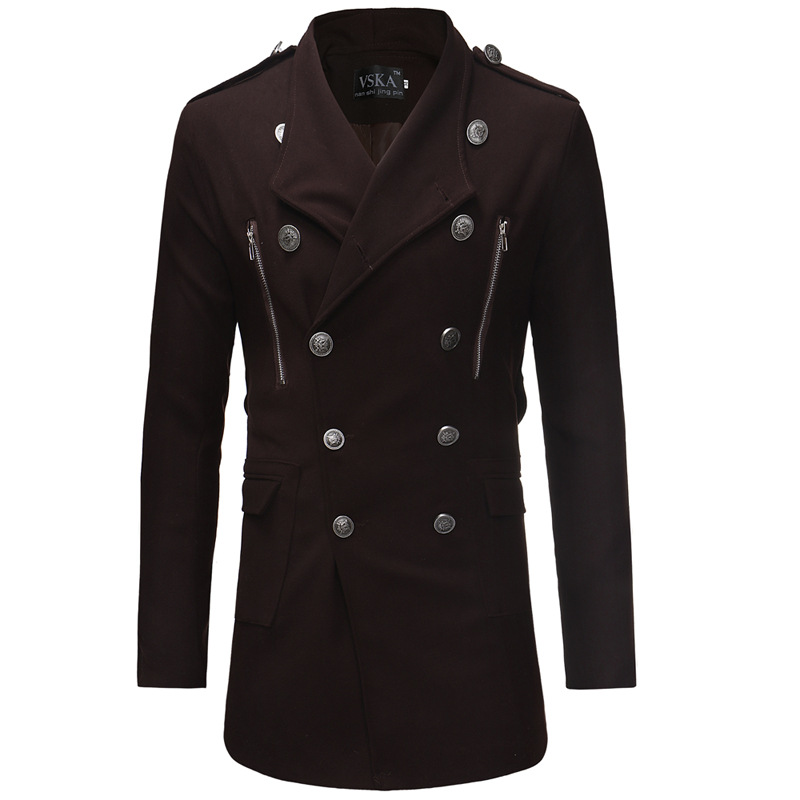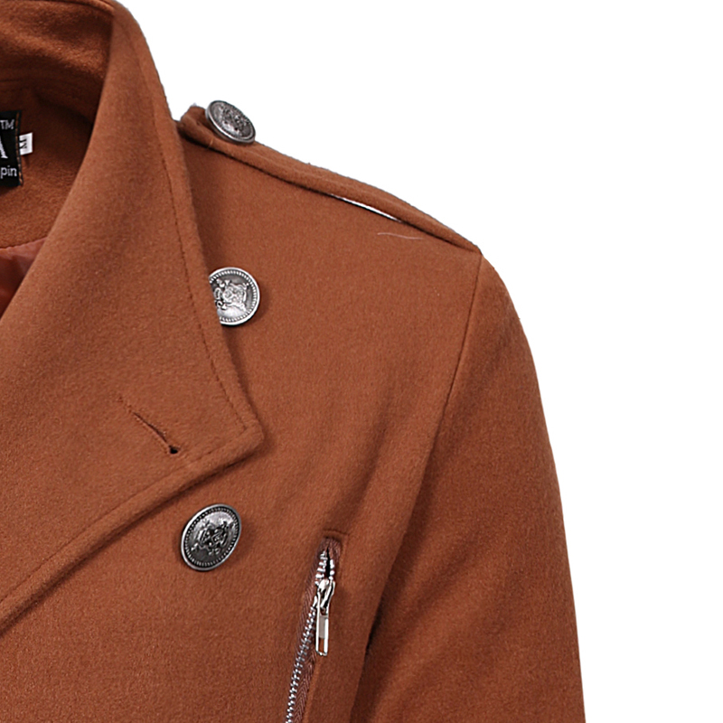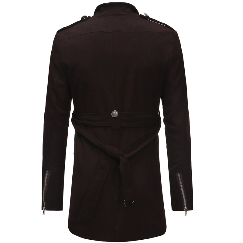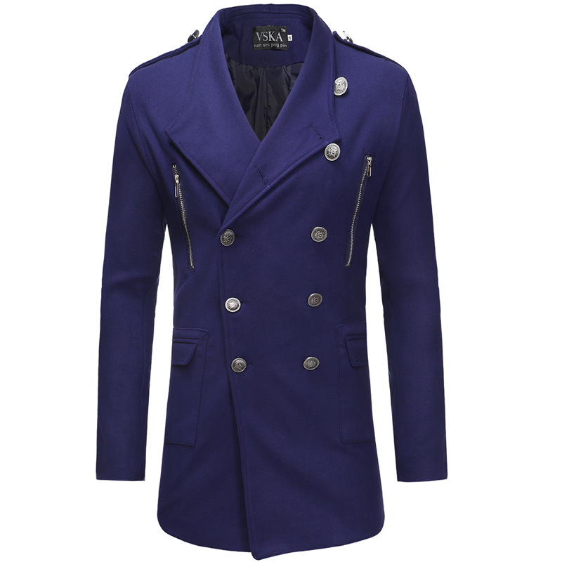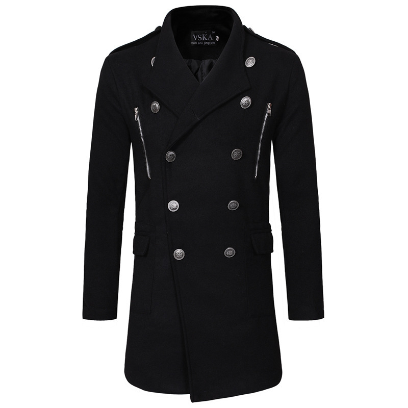 Double-breasted Large Lapel Men's Casual Slim-fit Mid-length Woolen Trench Coat