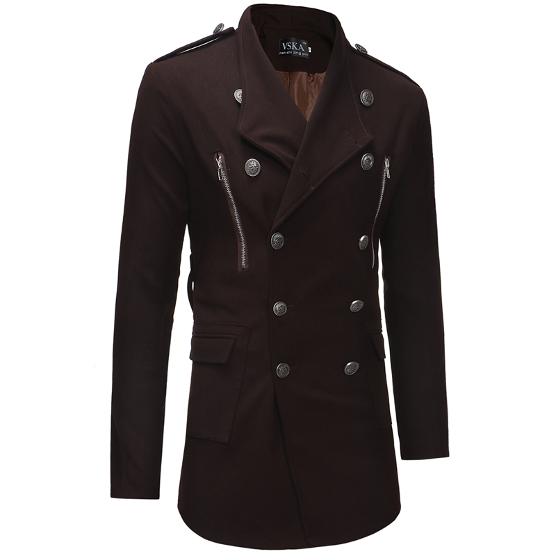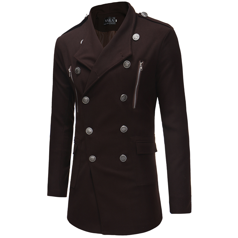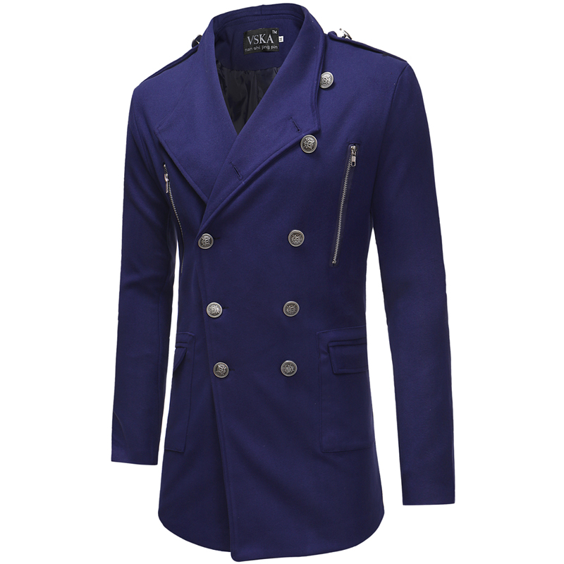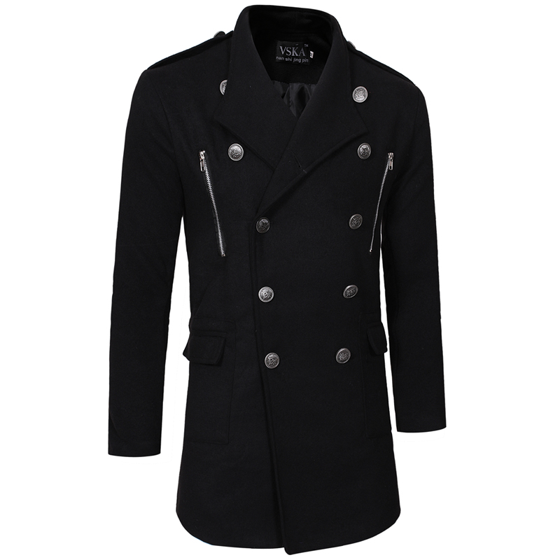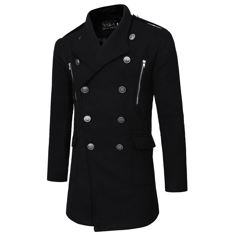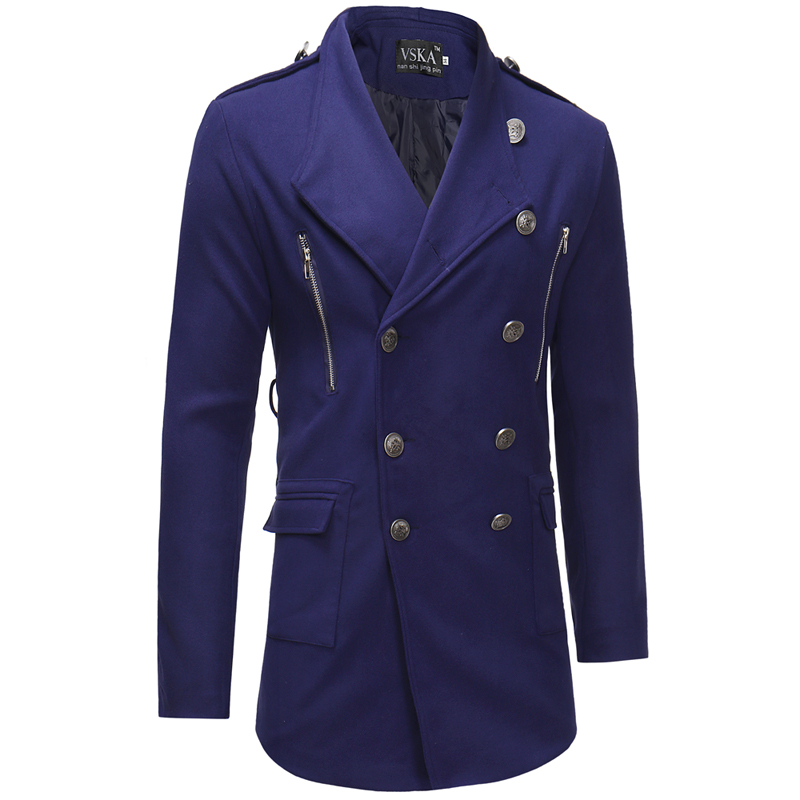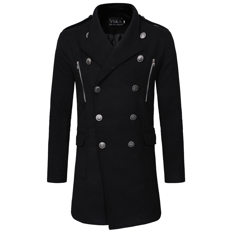 Double-breasted Large Lapel Men's Casual Slim-fit Mid-length Woolen Trench Coat