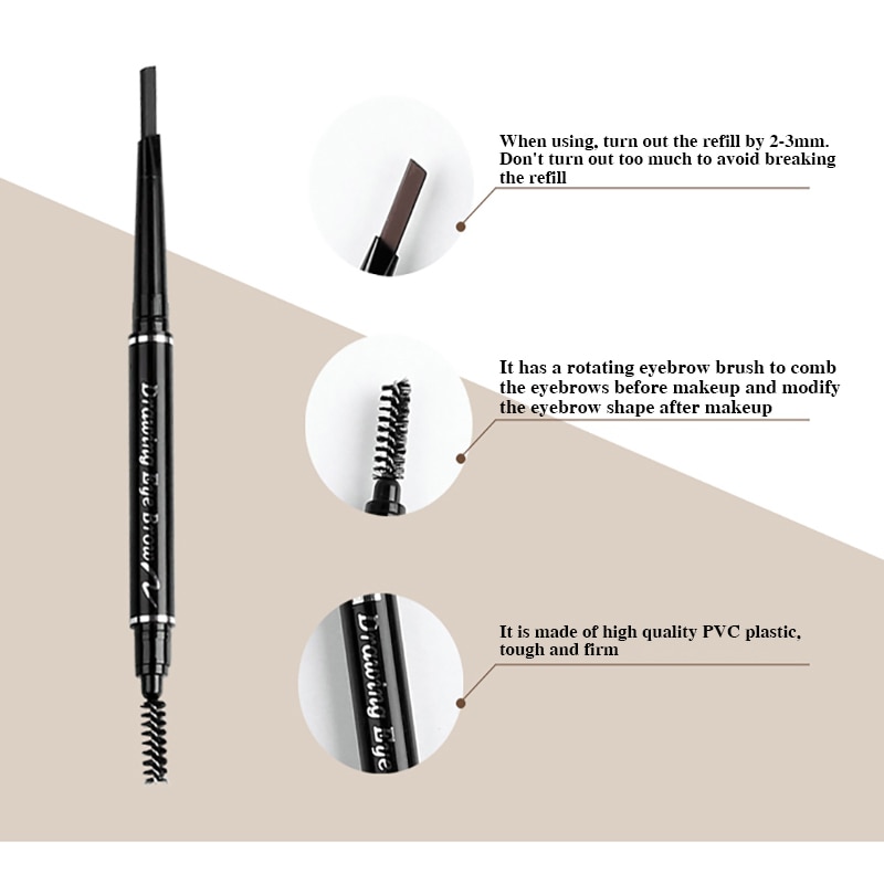 effect. The refill is soft and has a clear outline, bright color, stronger three-dimensional effect, and long-lasting makeup. Double pen head design, one end is a revolving refill, the other end is a spiral eyebrow brush, a dual-purpose brush, taking care of every eyebrow, combing before makeup, modifying the eyebrow shape after makeup, more three-dimensional and natural