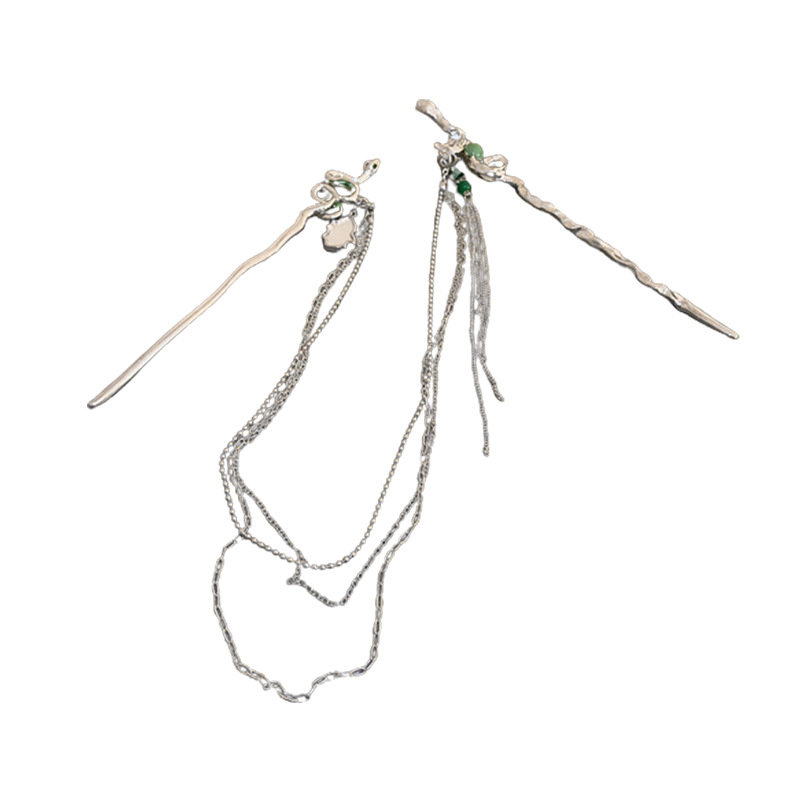 Double Hairpin Split Snake-shaped Tassel Hairpin New Chinese Bun Plate