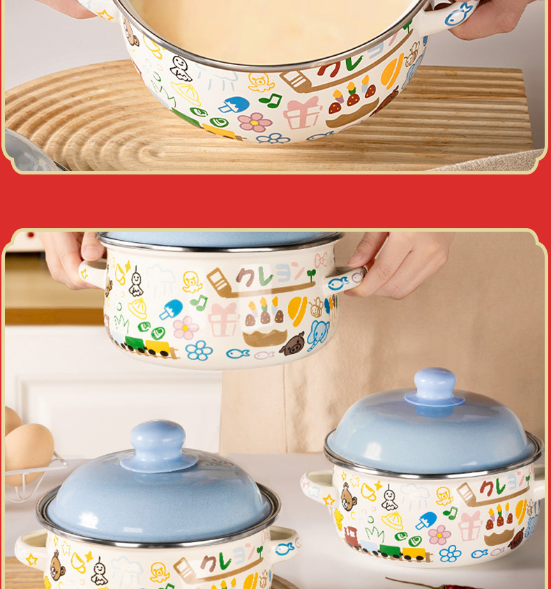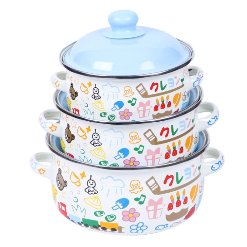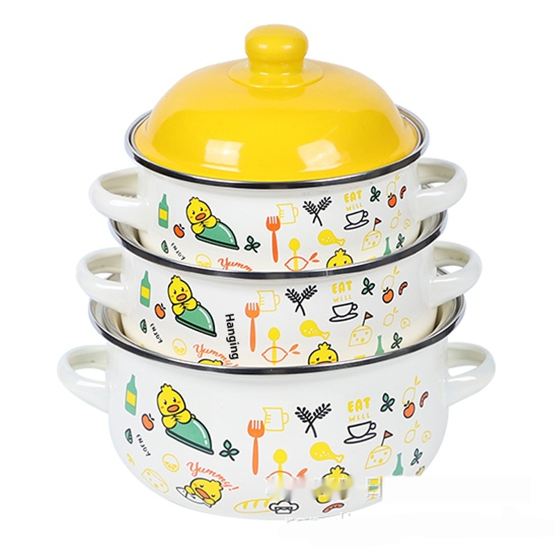 Colors: Small Yellow Duck Enamel Persimmon Teapot Three-Piece Set; Adorable Enamel Persimmon Teapot Three-Piece Set; Macaron-Color Enamel Persimmon Teapot Three-Piece Set; Jungle-Style Enamel Persimmon Teapot Three-Piece Set.