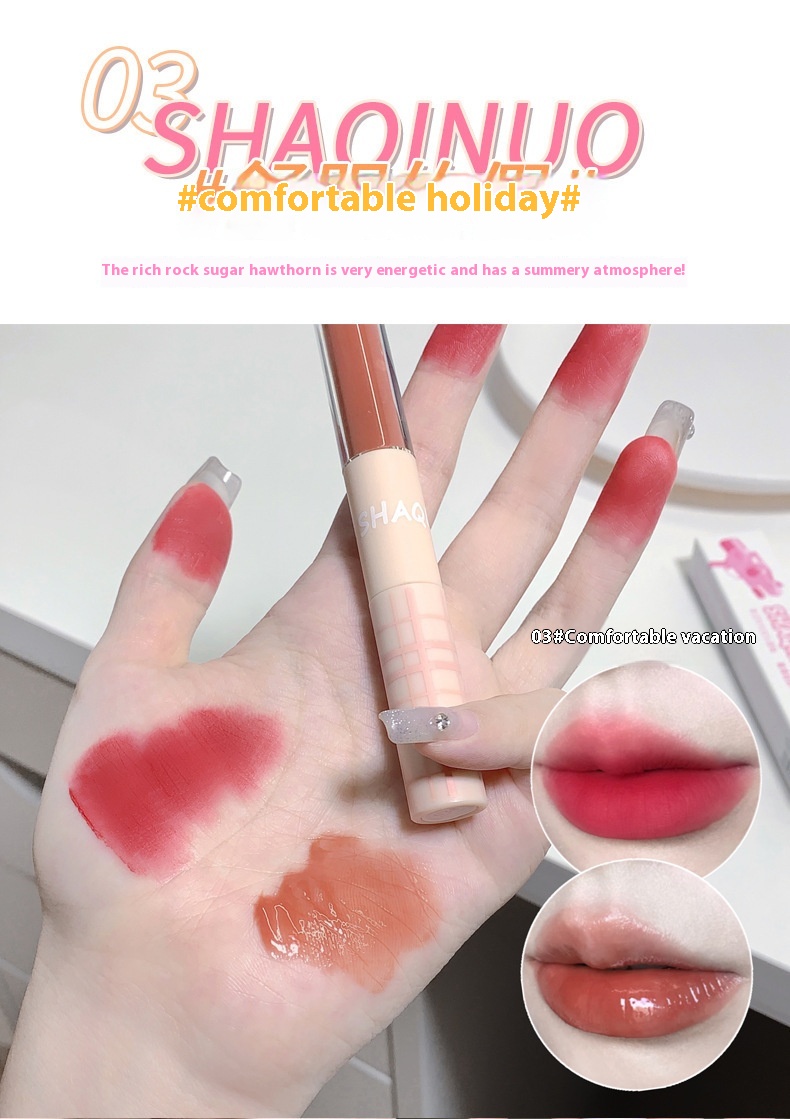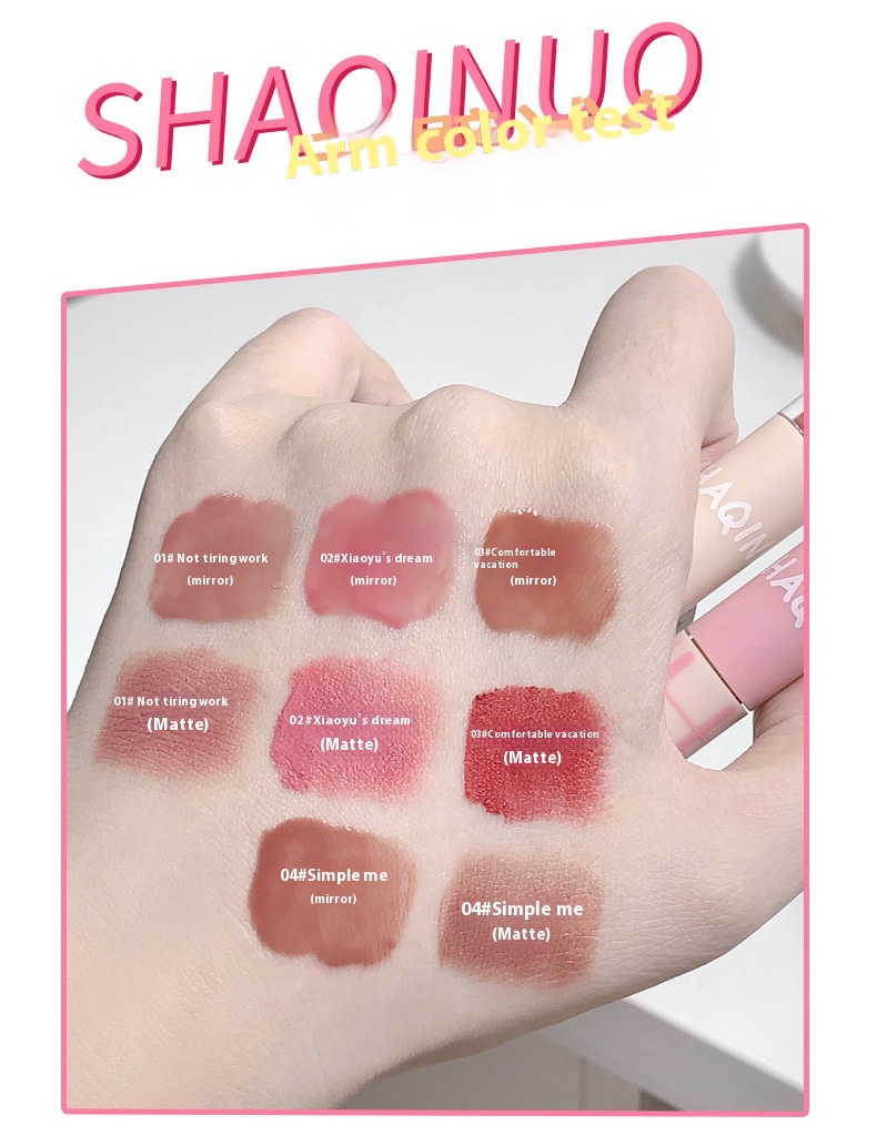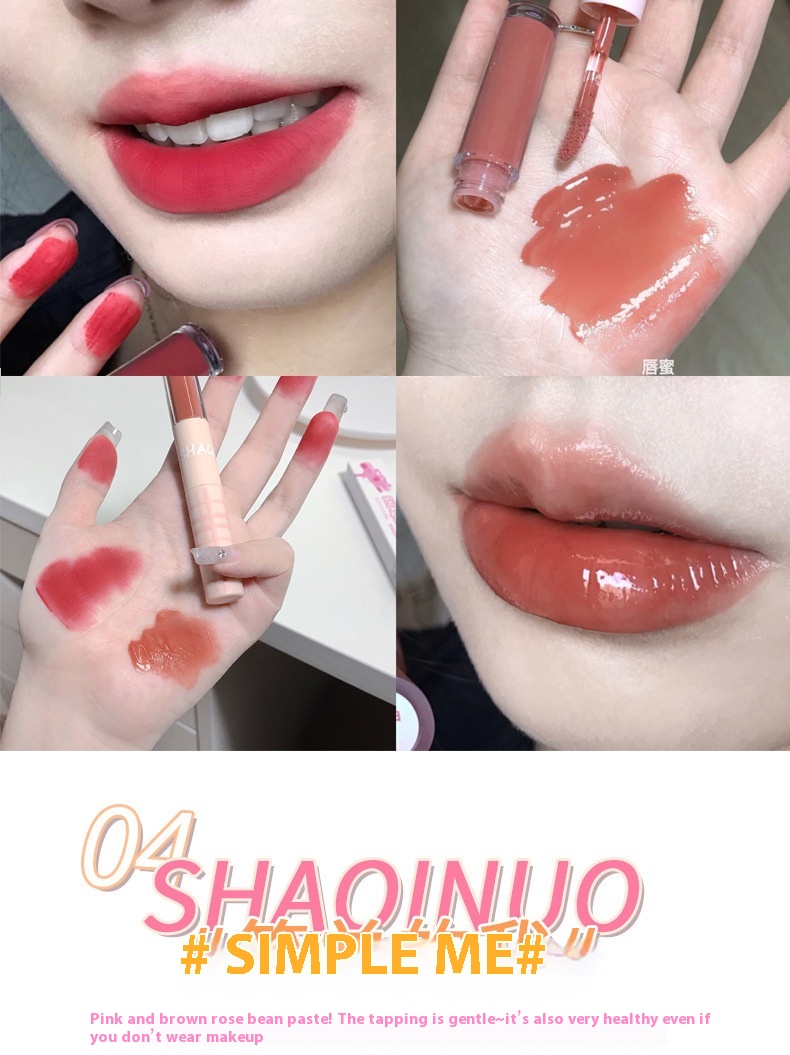 Color: 01# Not tired work (lip mud lip gloss),02# light rain Dream (lip mud lip gloss),03# comfortable fake (lip mud lip gloss),04# Simple me (lip mud lip gloss)