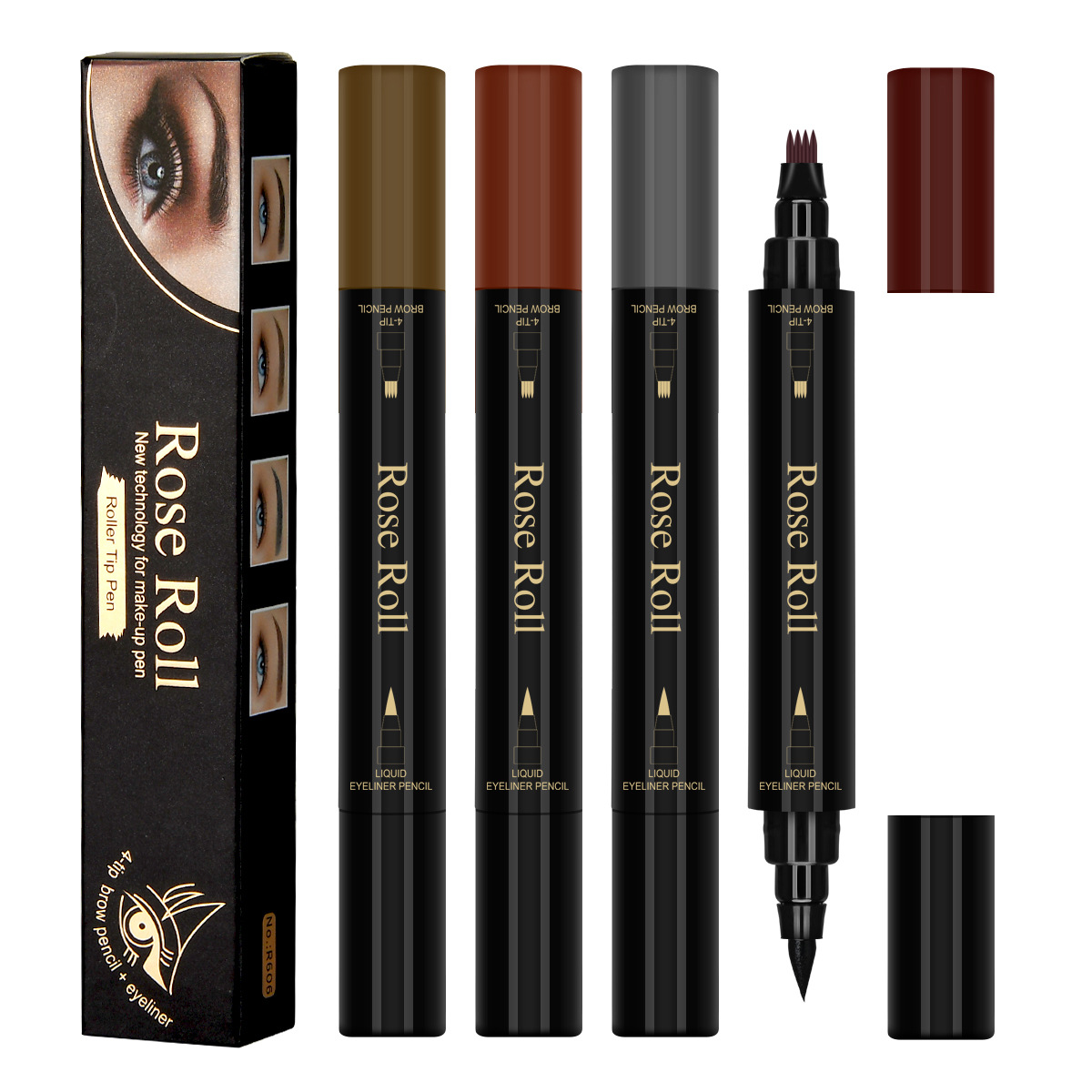 Color: 1#dark brown (eyebrow pencil) + black (eyeliner), 2# light brown (eyebrow pencil) + black (eyeliner), 3#dark gray (eyebrow pencil) + black (eyeliner), 4# red Brown (eyebrow pencil) + black (eyeliner)