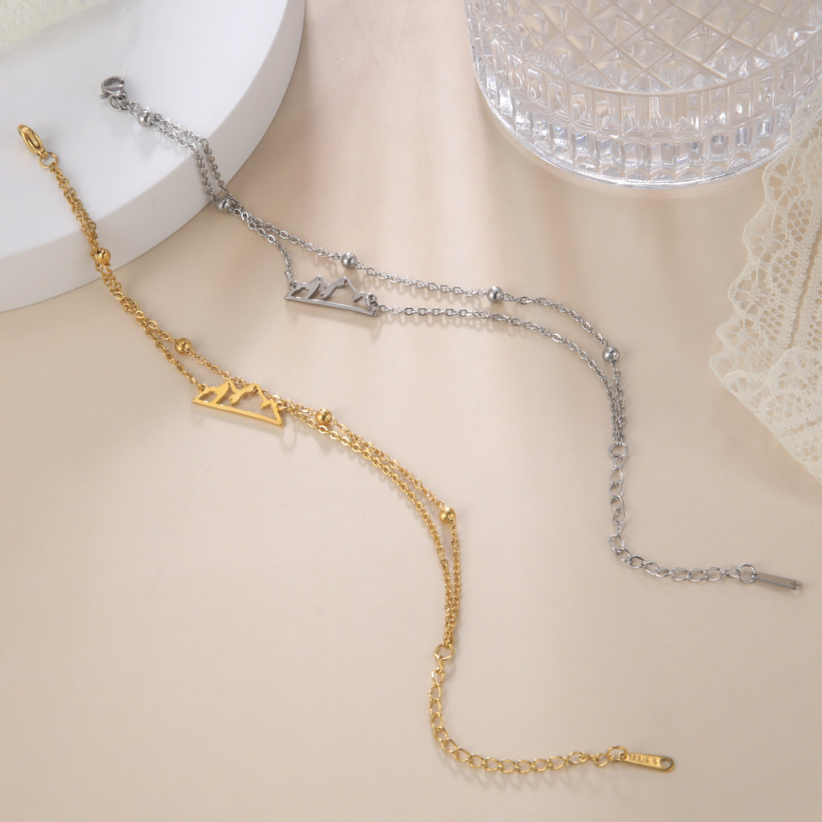 Color: Steel double layer bead necklace, gold double layer bead necklace, steel double layer welding chain, gold double layer welding chain, steel wax rope, gold wax rope