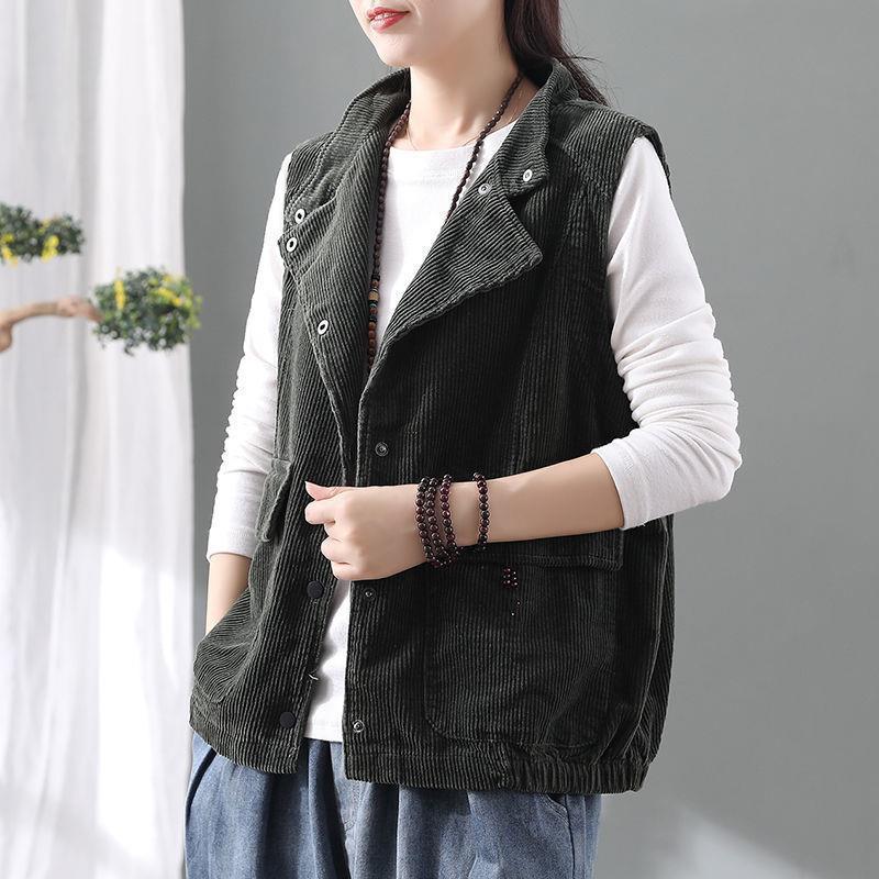 Double-layer Corduroy Cardigan Vest Women's Coat Waistcoat Lapel Top Retro