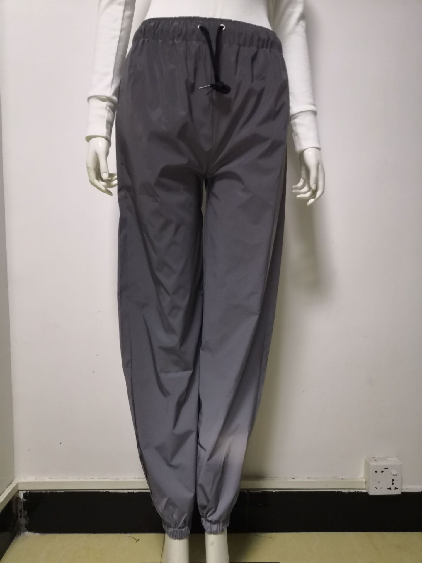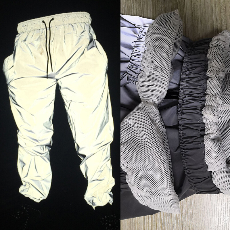 Double-layer Elastic Waist Lace-up Reflective Trousers For Night Running