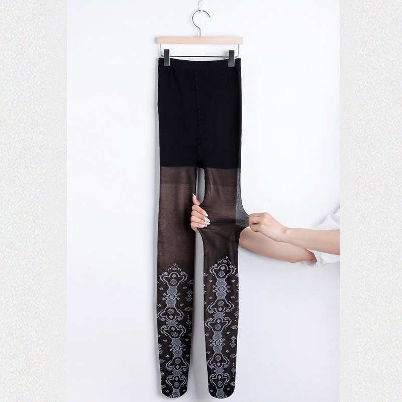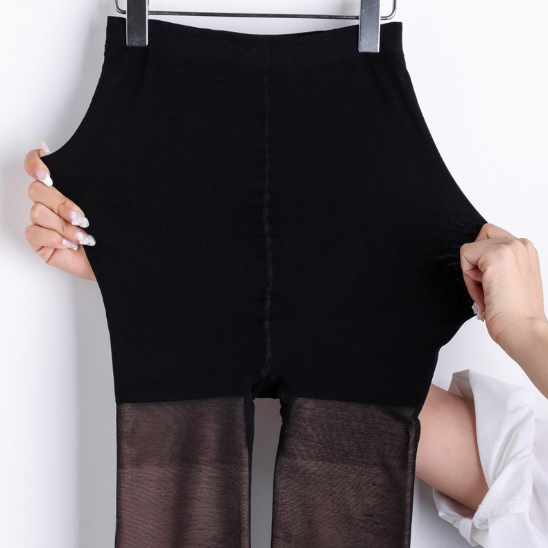 Double-layer Fleece-lined Black Silk Stockings Women