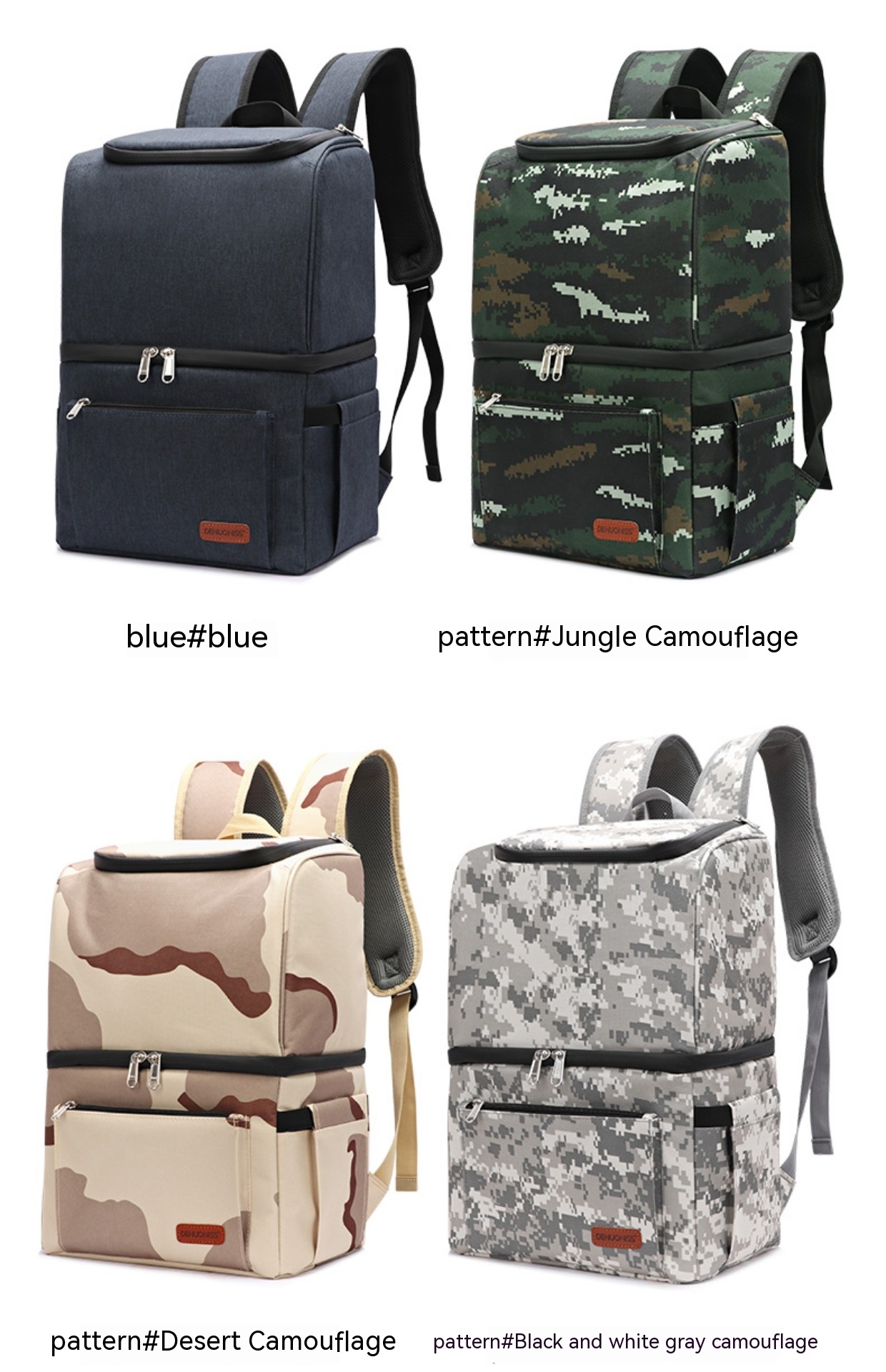 Color: blue, black, gray, rainforest camouflage, black, white and gray camouflage, desert camouflage