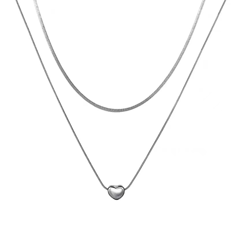 Color: all titanium steel double snake chain love heart, side OT love heart