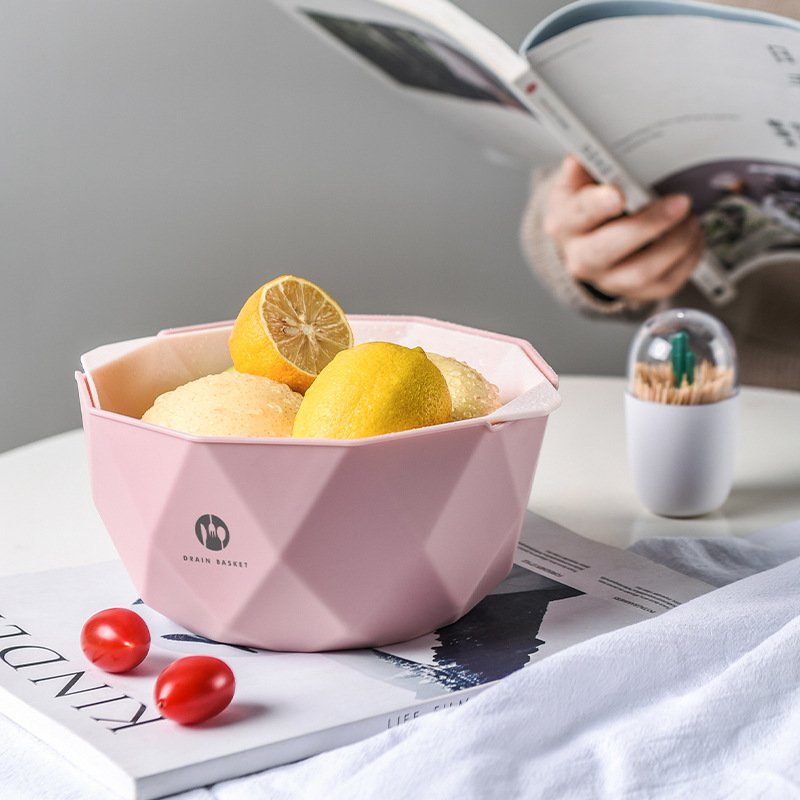 There are large and small geometric draining baskets, which will be a good helper for daily life. Diamond cut surface, double-layer draining function, good design also changes the style of life and a variety of color options to decorate daily life.
