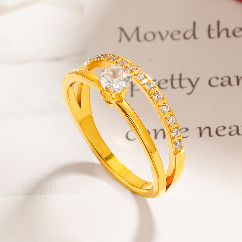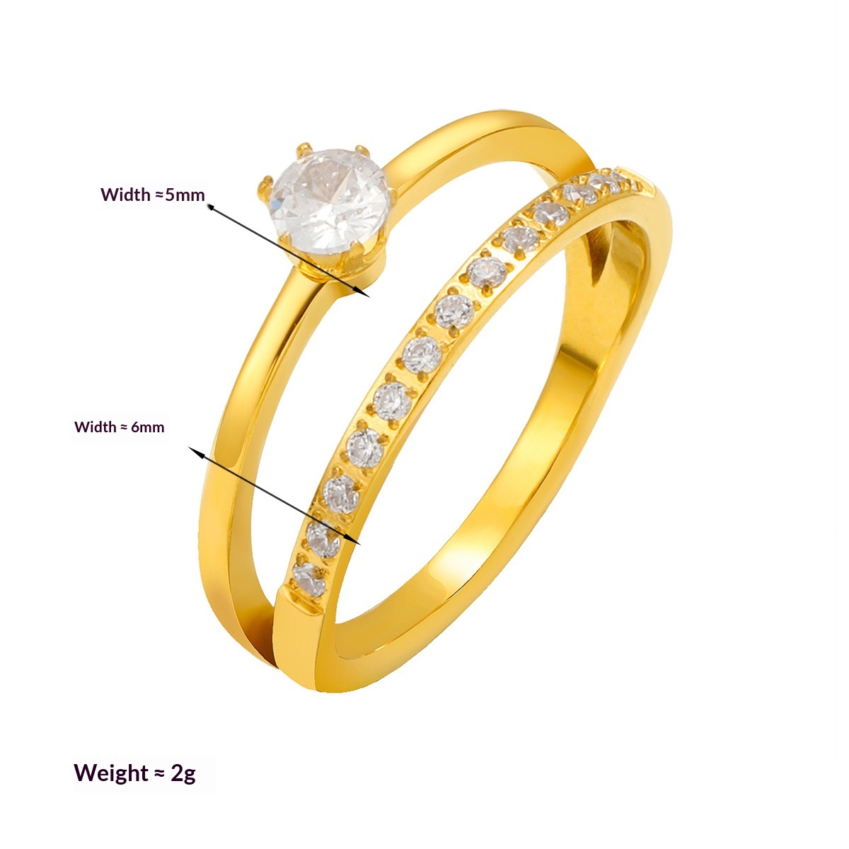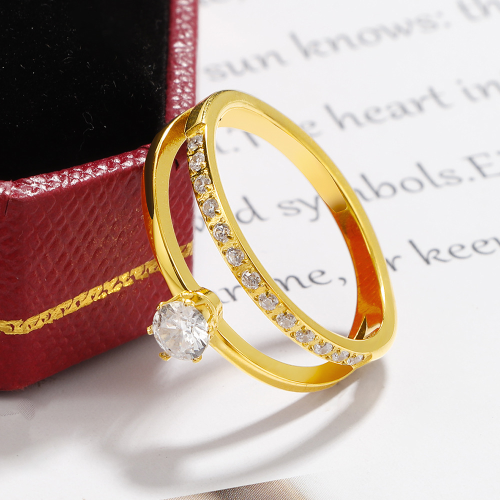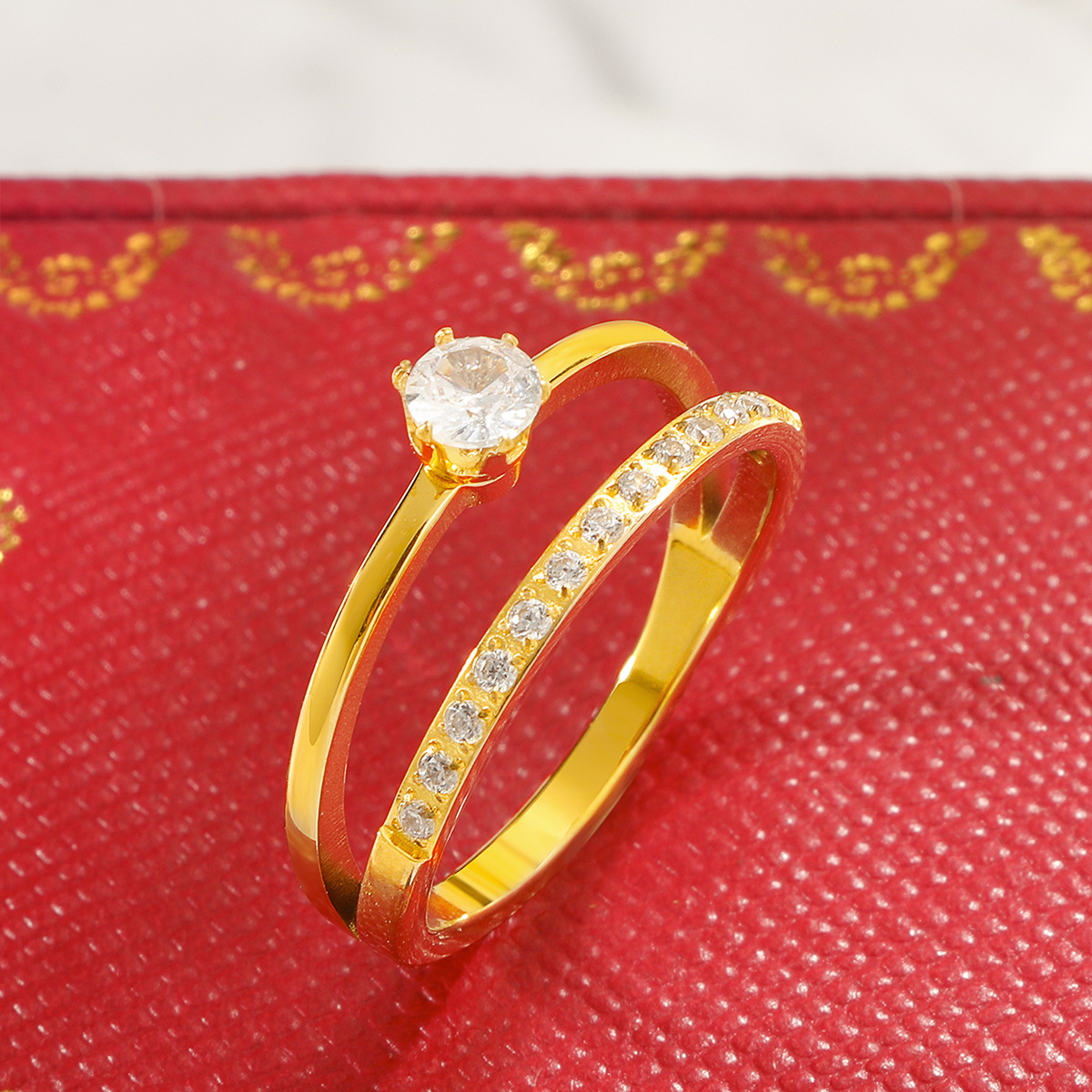 Color: J190 Double-Tiered Six-Prong Zircon-Inlaid Diamond Ring (Gold)