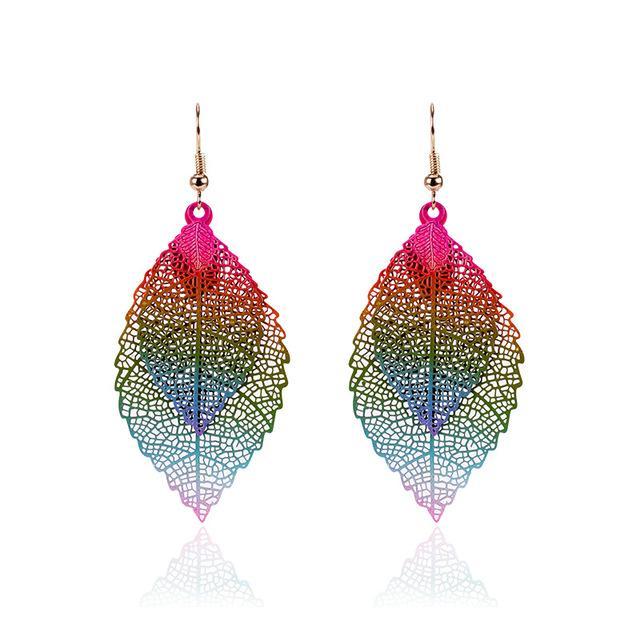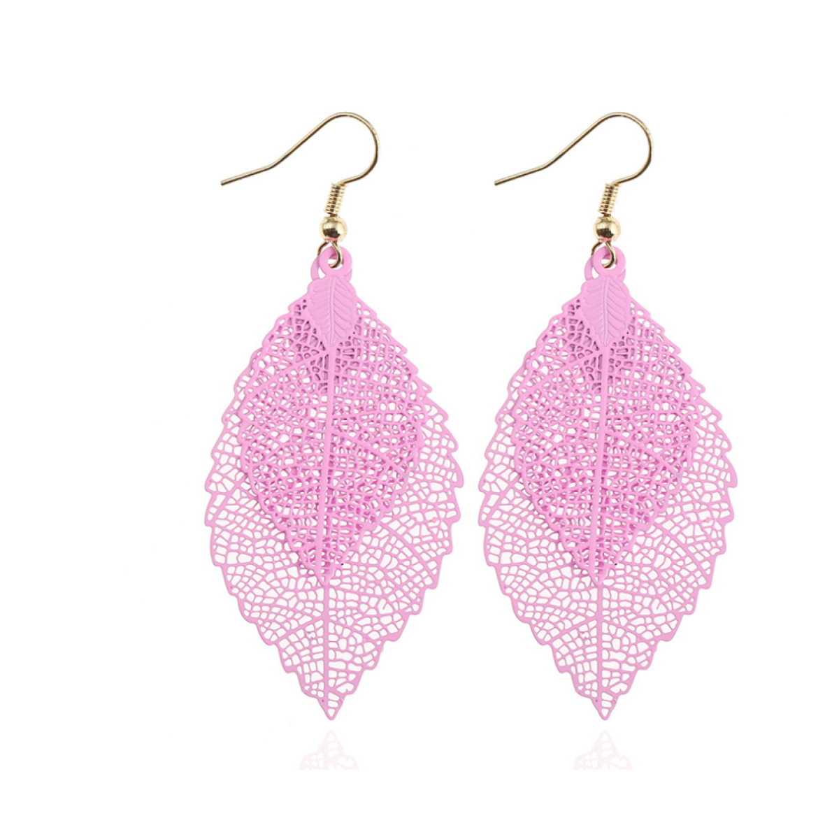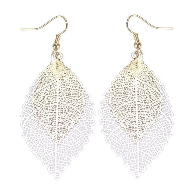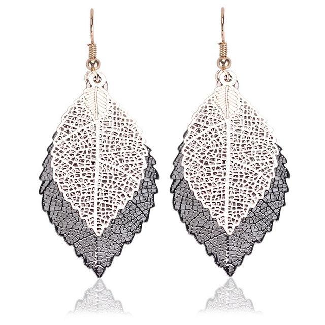 Double-layered leaves tassel earrings Simple retro colored metal computer leaves-leaf earrings