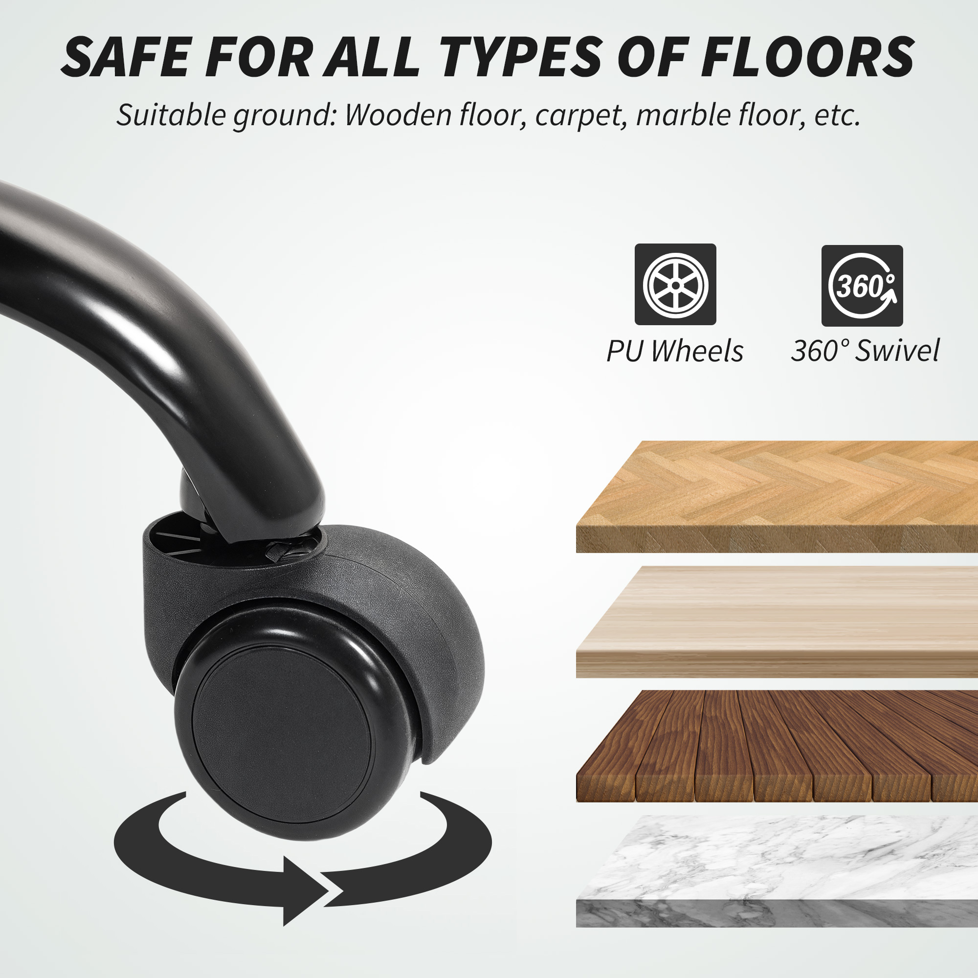Do long hours at the desk leave you drained and stiff? Then look to this home office chair. Double padded, it keeps you comfortable as you work, with the high back and arms for support. The seat has 360° swivel movement, so it moves in motion with your body freely as you work. Complete with five wheels on the base.