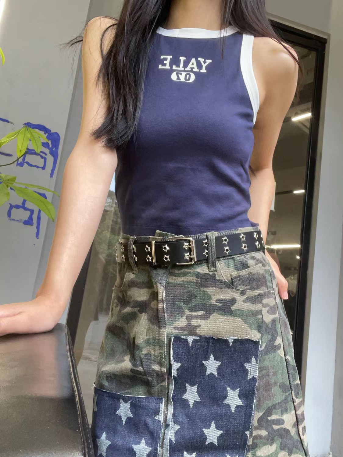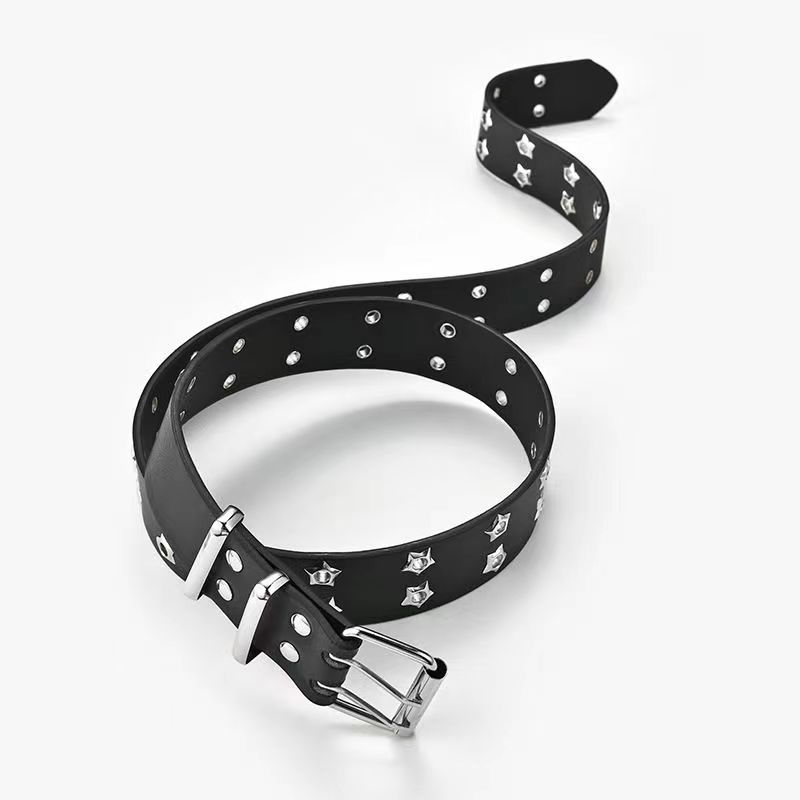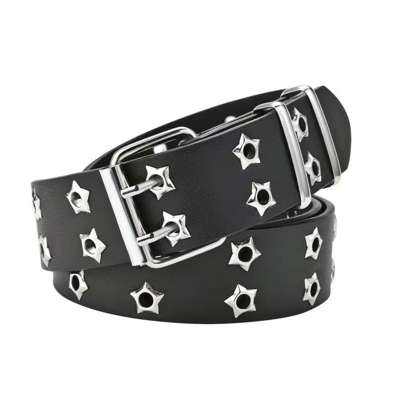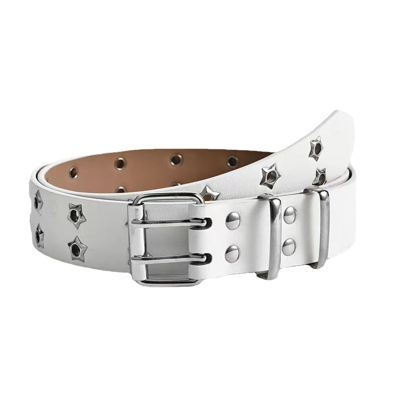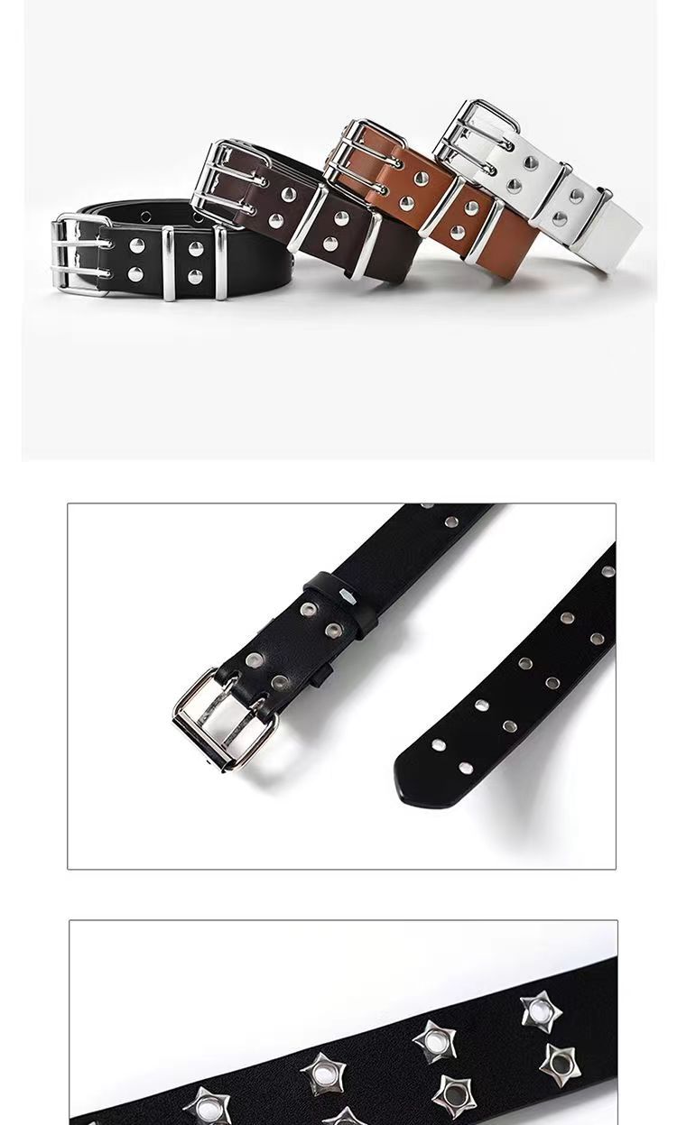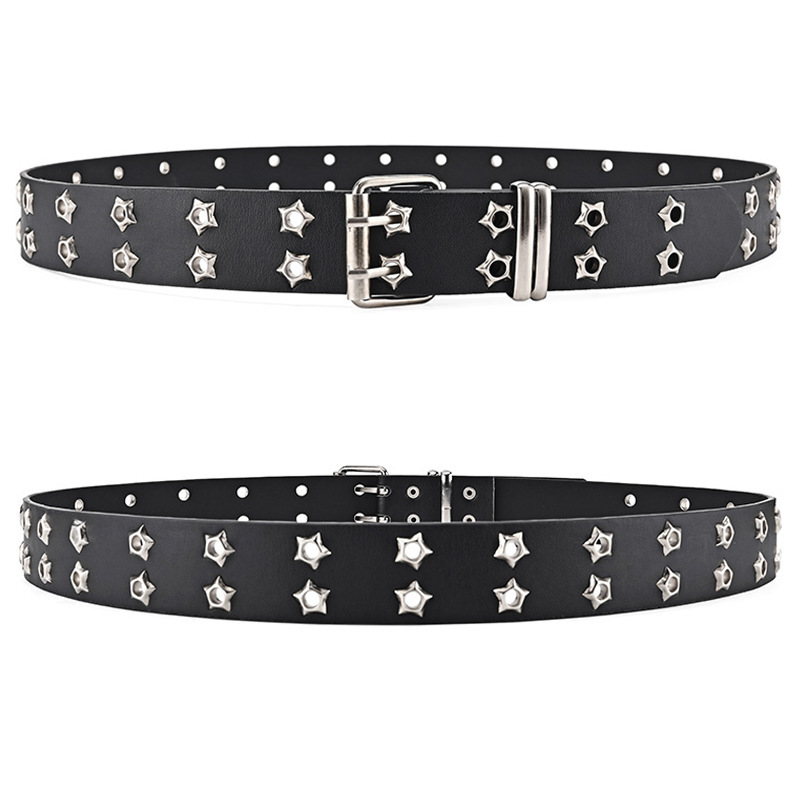 Double-Row Eyelet Belt With Hollowed-Out Design Casual Punk Leather Belt For Women