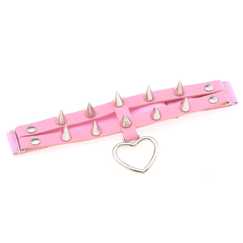 Name: Peach heart double row rivet leg ring