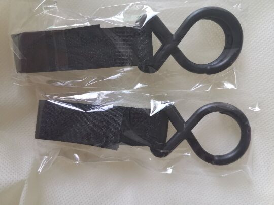 2 stroller hooks tucked into a backpack