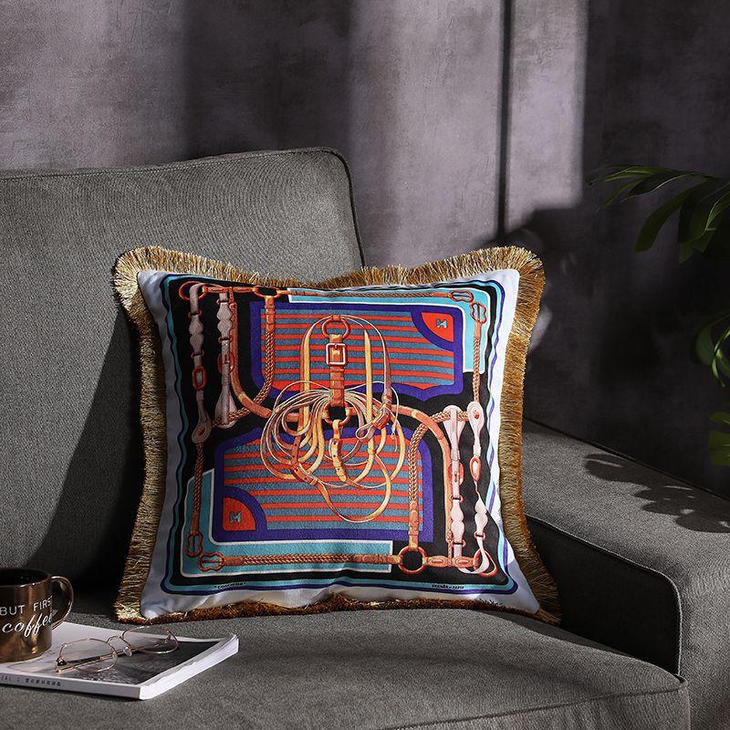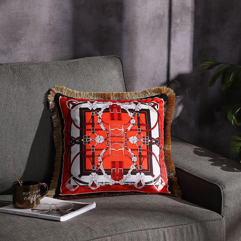 Double-sided Printed Fringe Pillow Sofa Cushion