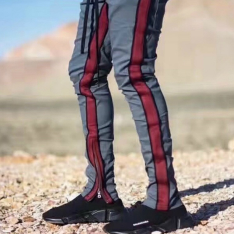 Double Stripes Ankle Zips Track Pants Color Blocking Sweatpants Black Drawstring Free Shipping