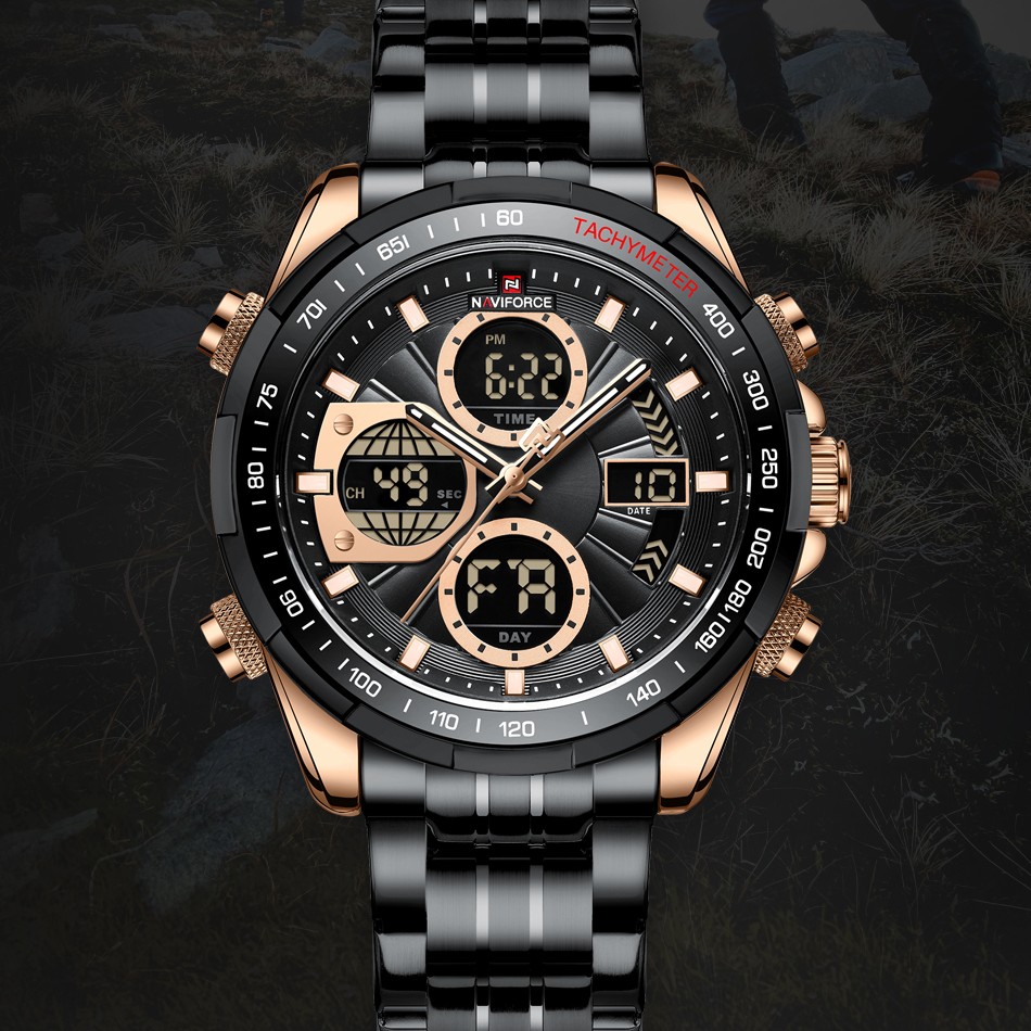 Additional features: 24-hour indication GMT, two-time countdown alarm clock calendar, luminous week display