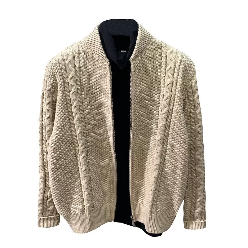 Double Zipper Design Cardigan Sweater Simple All-match