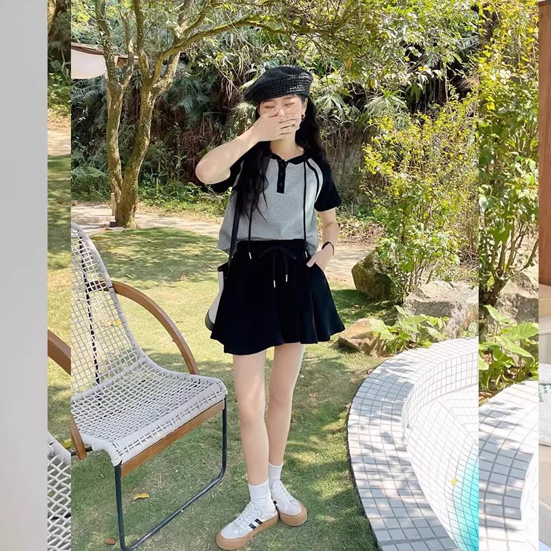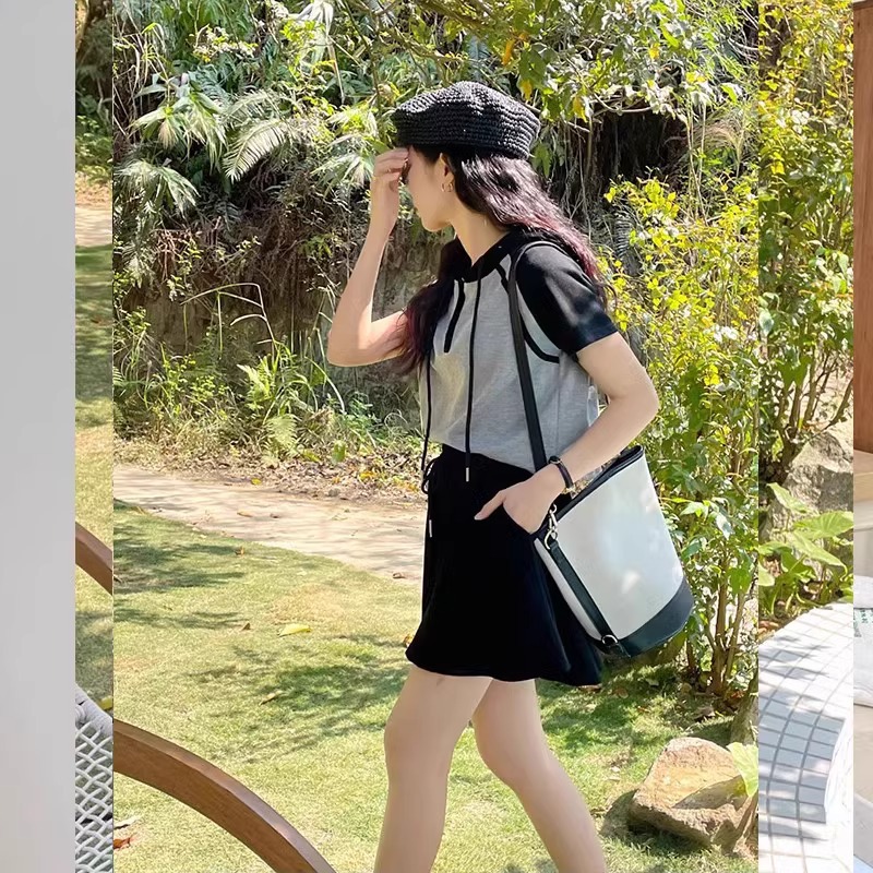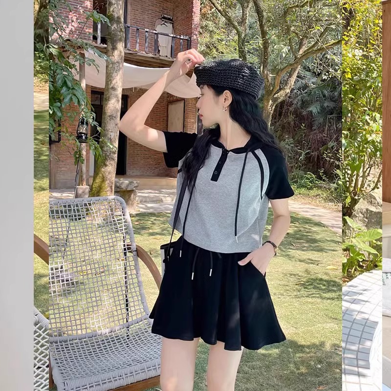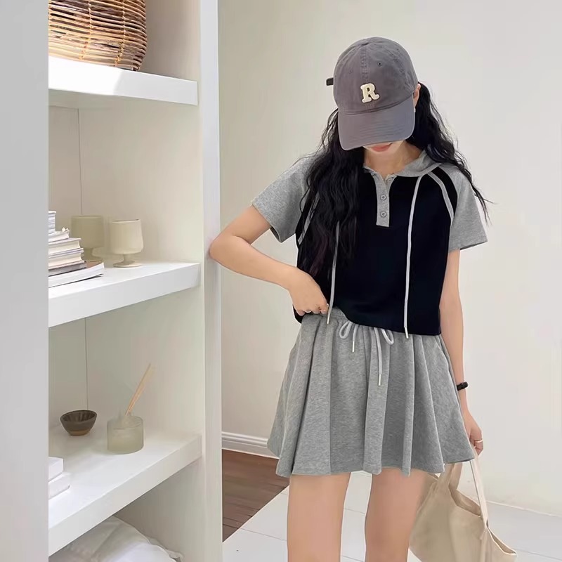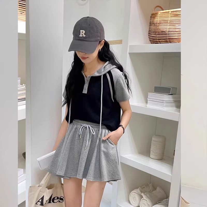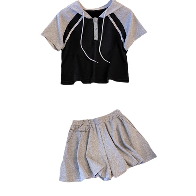 Double Zipper Hooded T-shirt And Shorts Two-piece Set