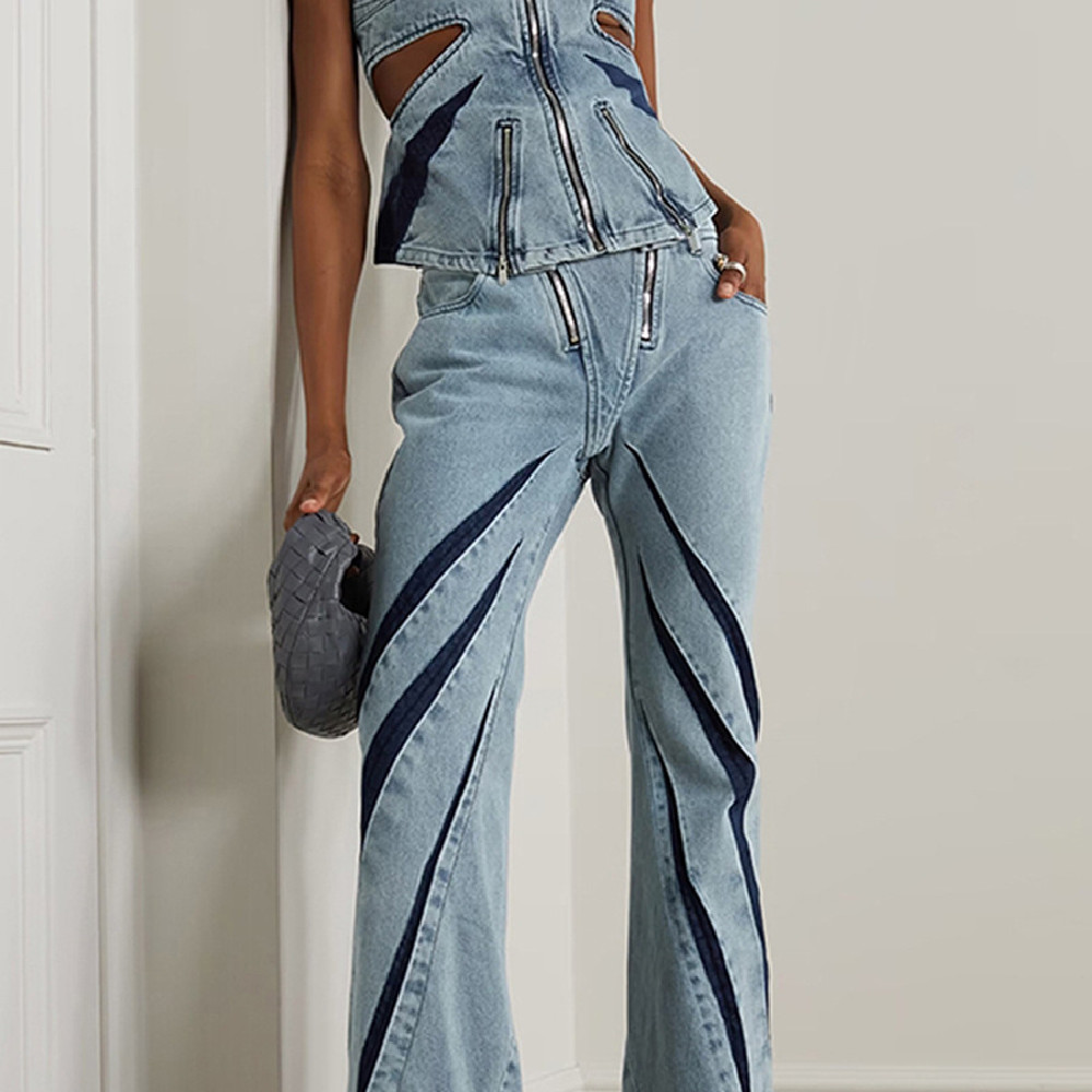 Double Zipper Stitching Elastic Washed Jeans